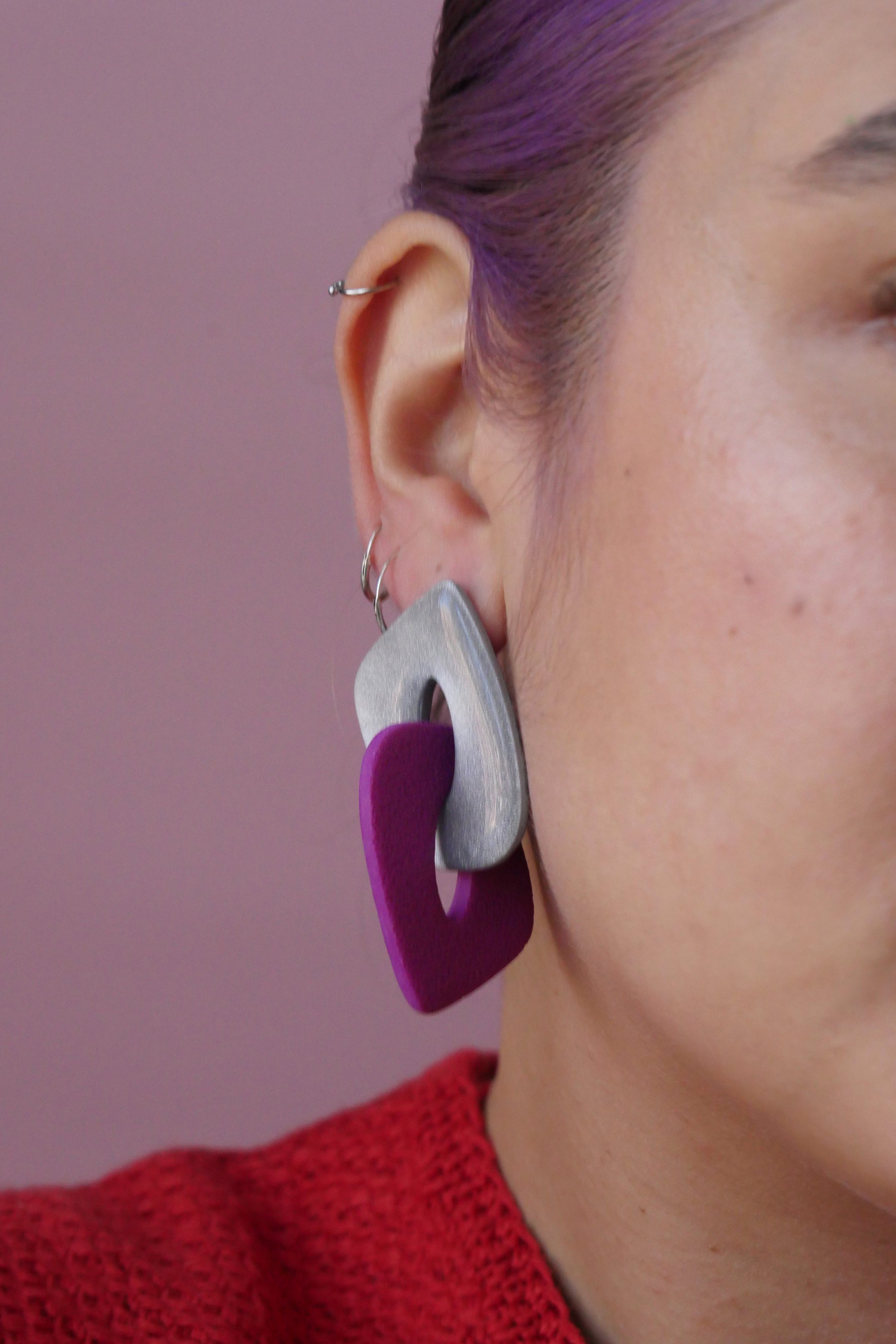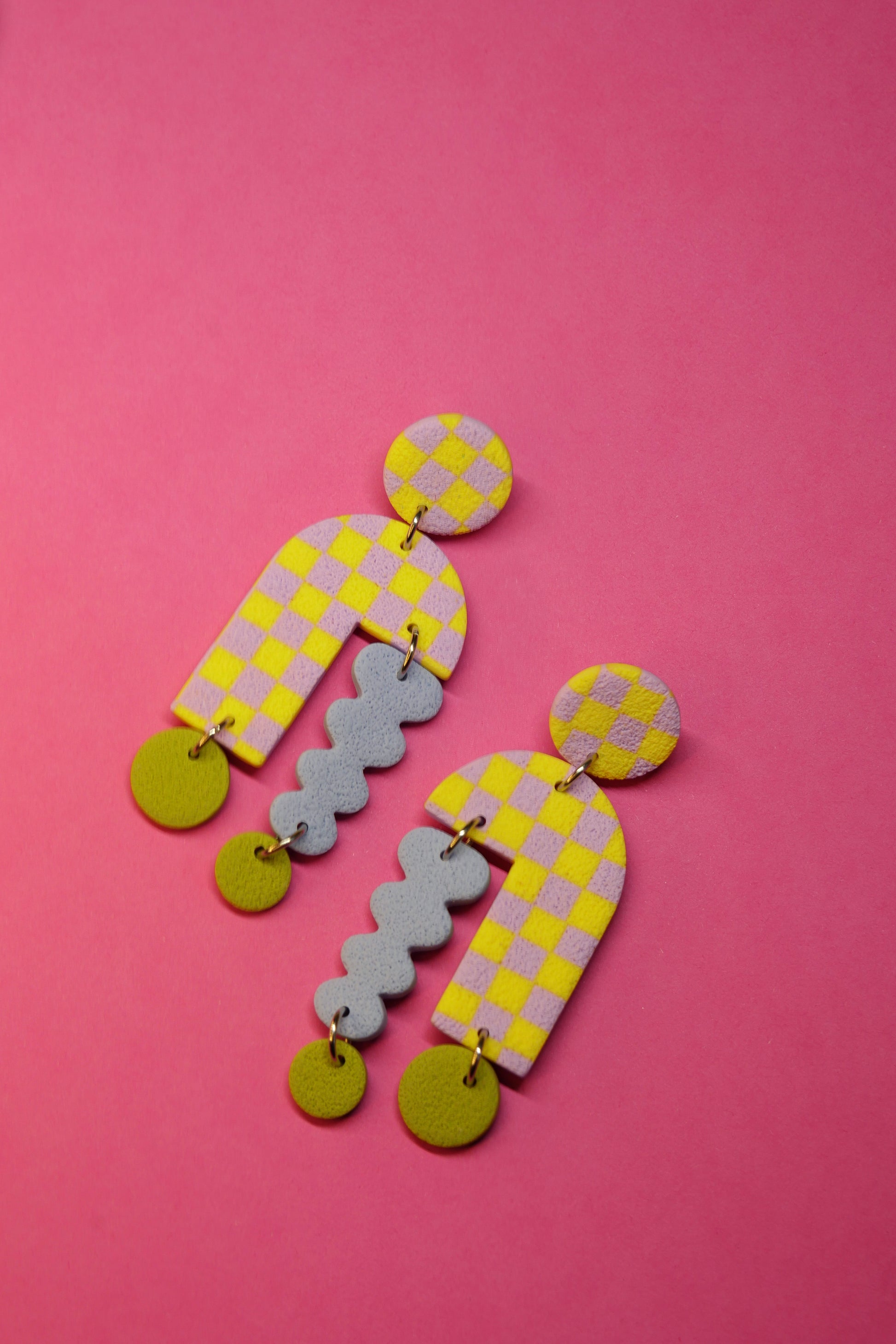 Faites à la main à Montréal, ses boucles sont en argile polymère et les tiges en acier inoxydable hypoallergénique.
