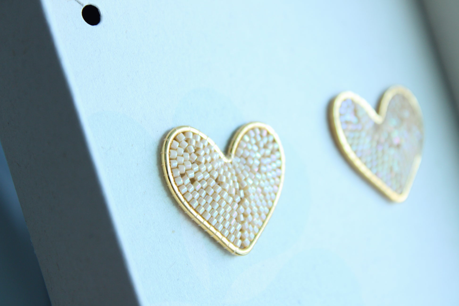 Puces en forme de cœur tissées à la main avec des perles Miyuki.