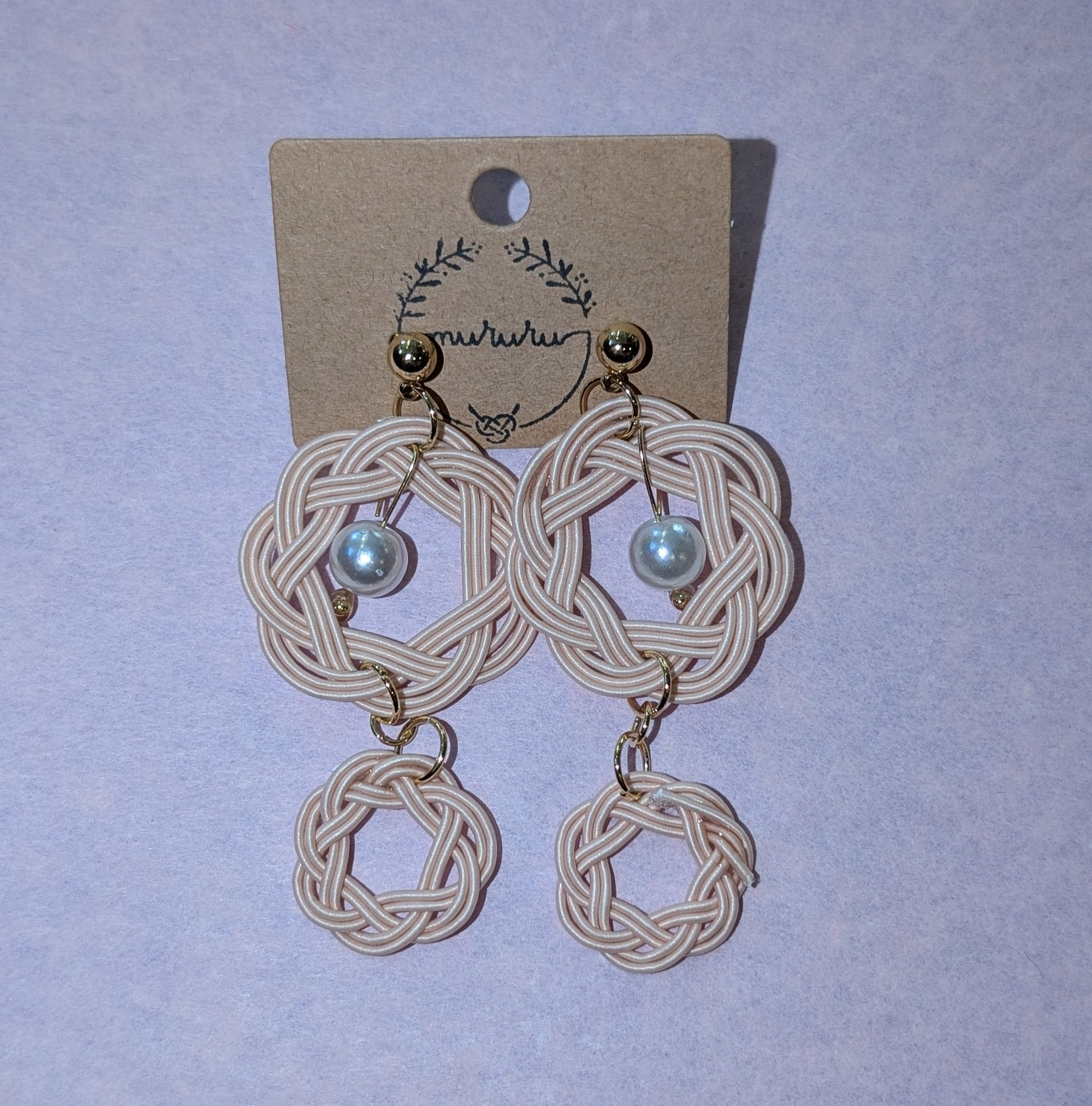 Handmade earrings made with Japanese traditional knotting style Aioimusubi with Japanese traditional Mizuhiki strings.