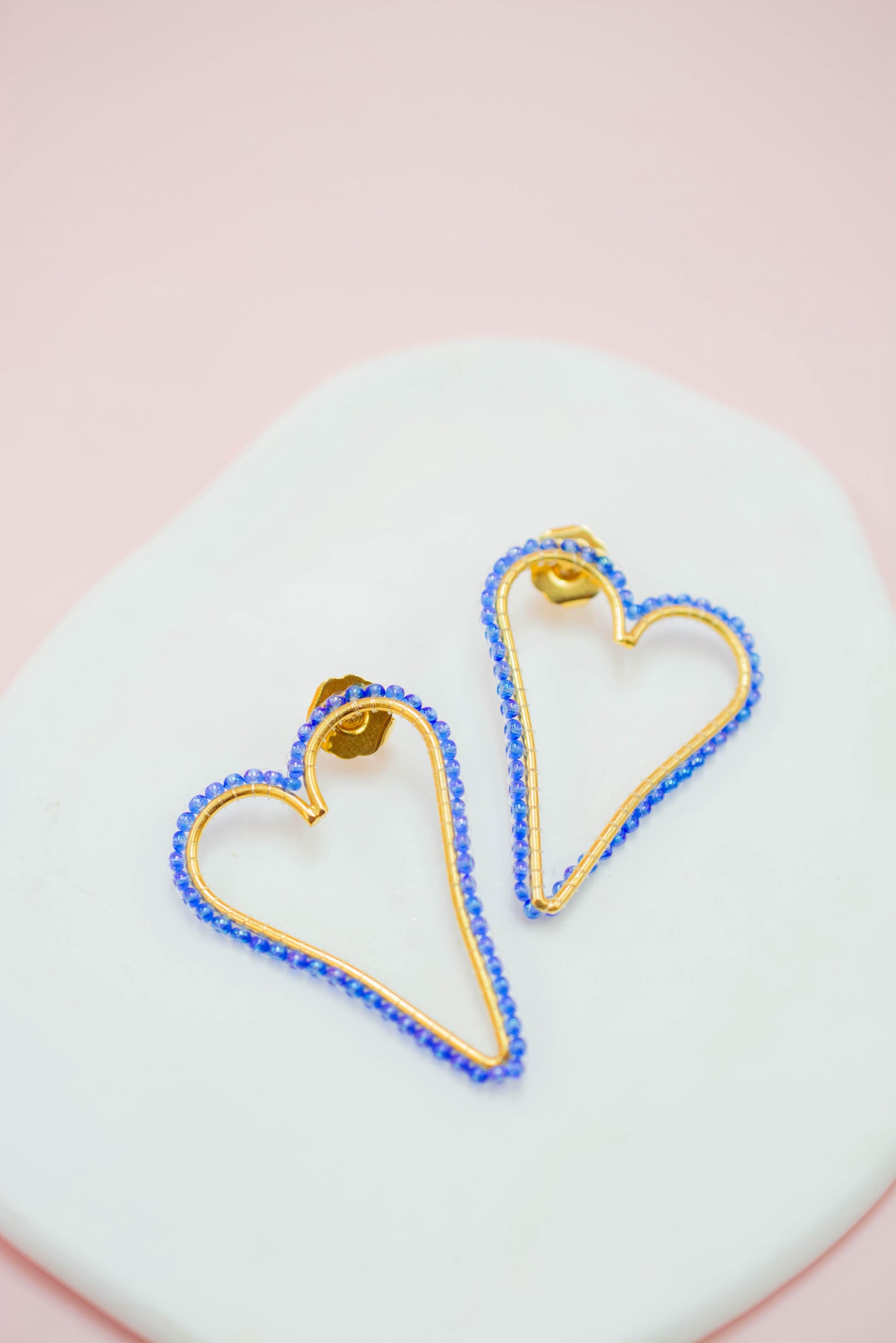 Boucles d’oreilles en forme de cœur, tissées avec perles Miyuki. Style pop et original. En bronze doré 24KT.