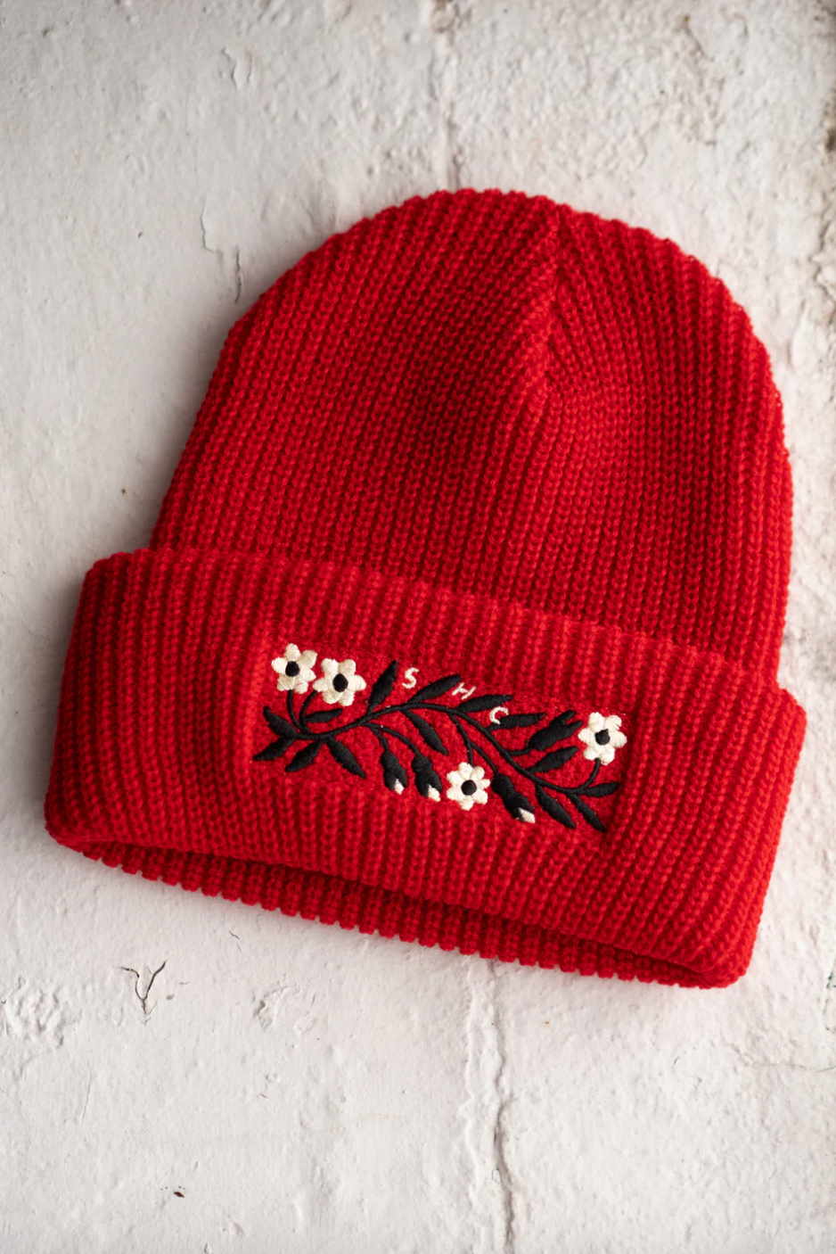 Red : Our shaker stitch beanies are a perfect compromise between a sleek fit and a chunky knit. These are made from scratch right here in Montreal out of 100% acrylic yarn in an excellent tomato red colour.