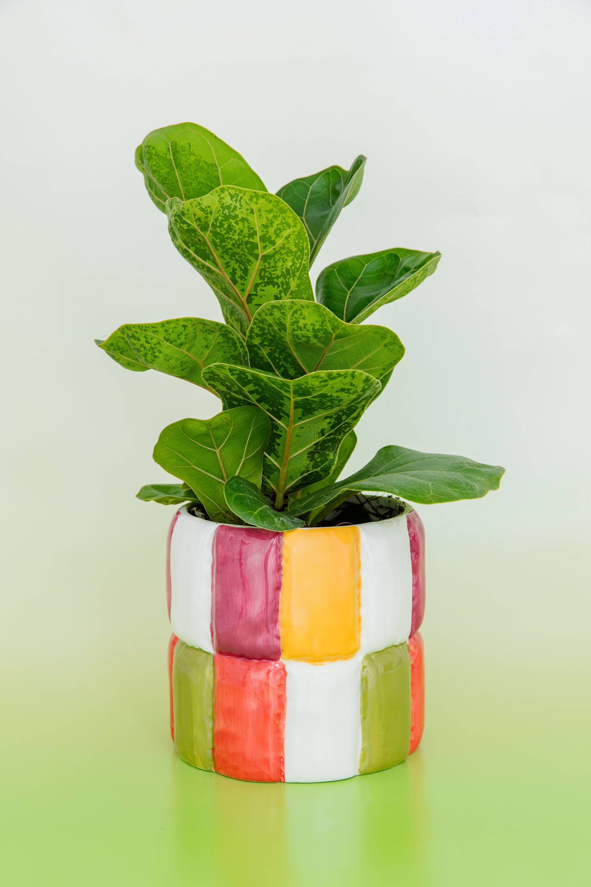 All your other plants will be super jealous. This hand-painted planter is made of ceramic and features a color-block design.