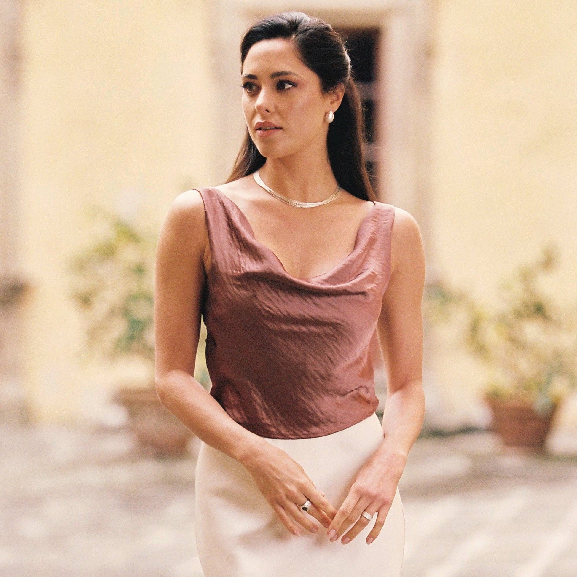 Ses multiples chaînes torsadées créent un drapé gracieux qui vous rendra glamour et chic.