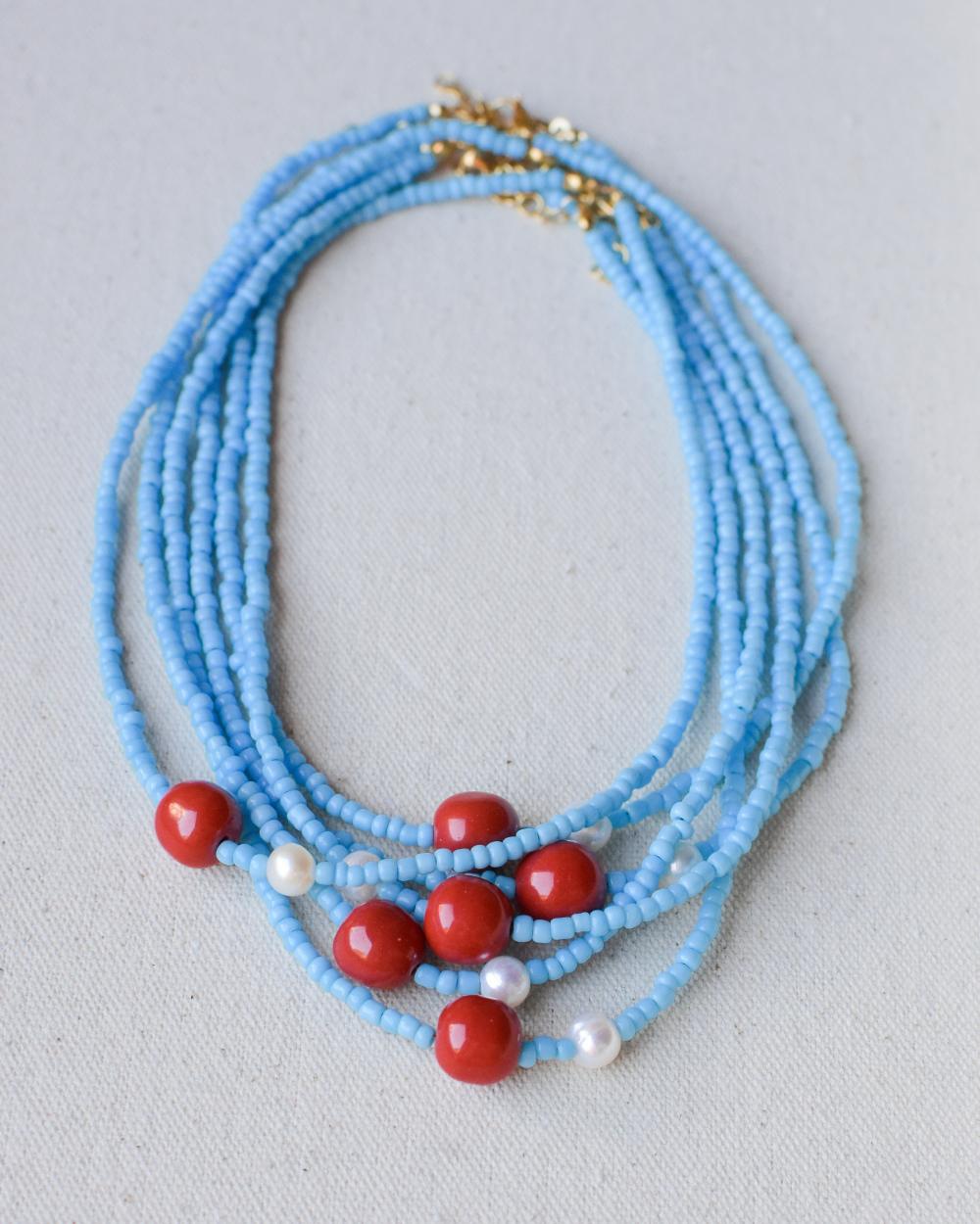 Bijoux fabriqués à la main à Milan, dans un esprit net et vacances, avec des perles et des pierres dénichés avec soin et assemblées avec beaucoup de goût.
