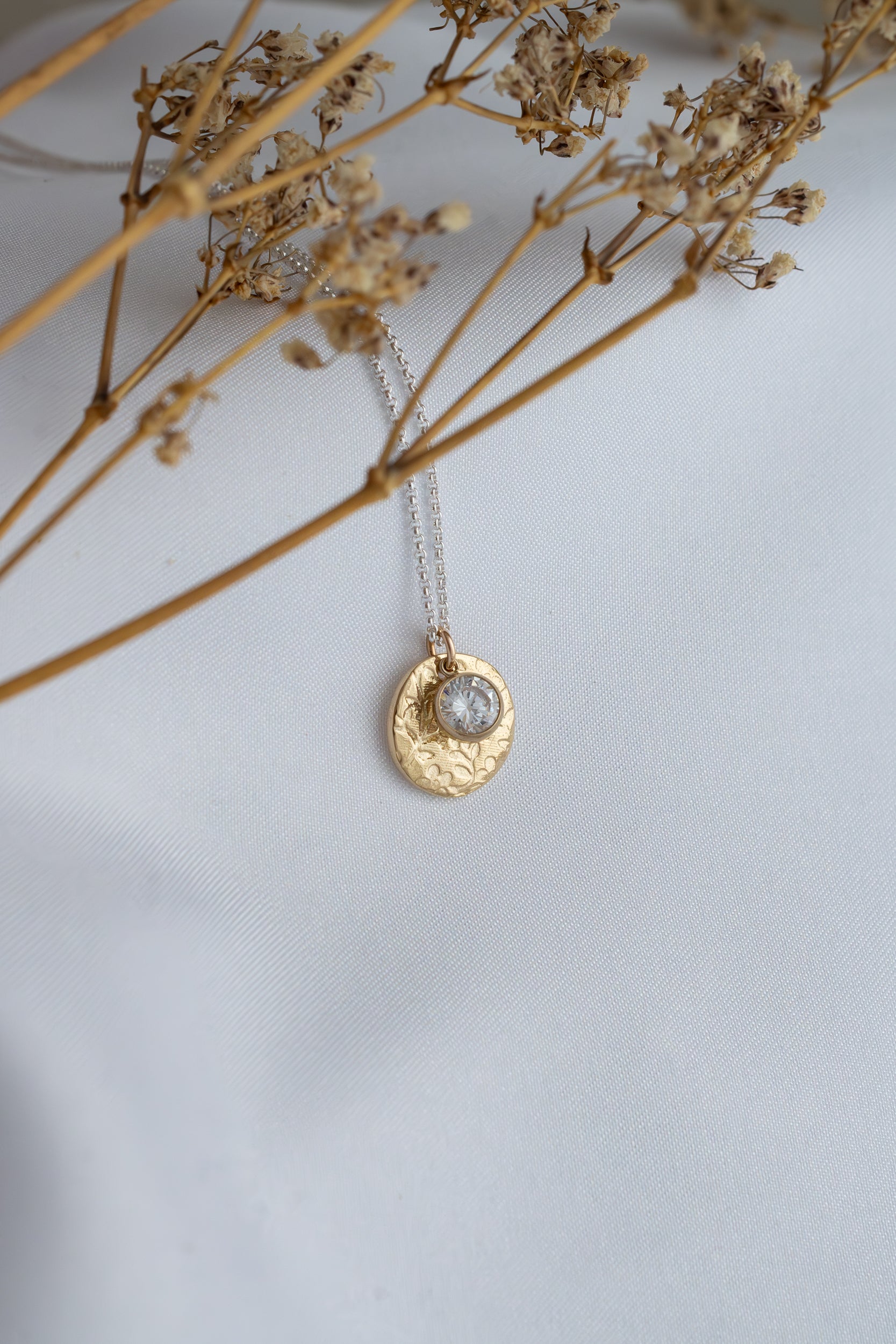 M041 Collier médaillon fleuri rond zircon cubique blanc