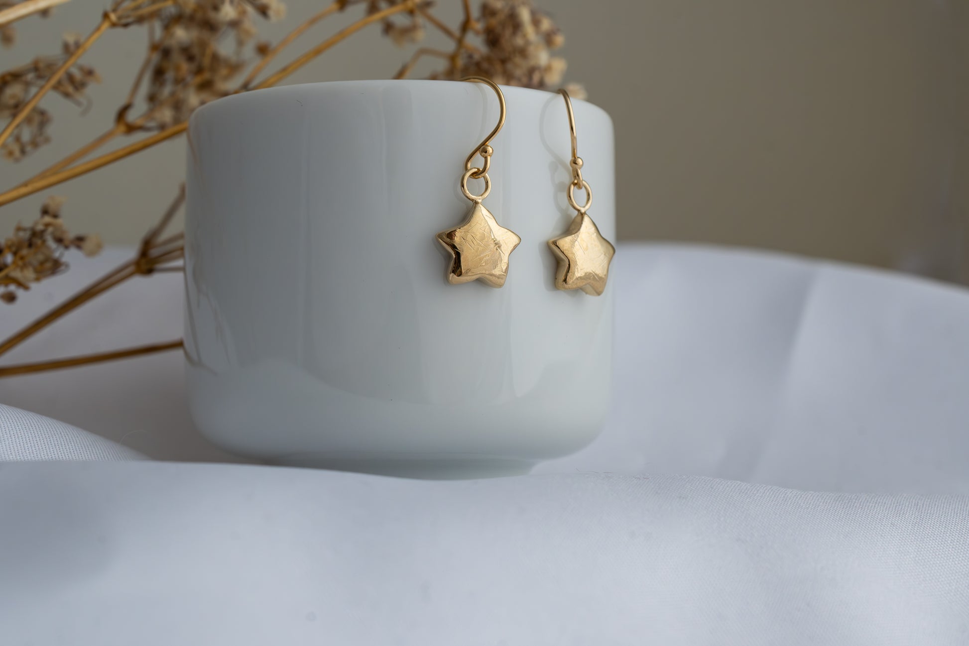M049 Boucles d'oreilles étoiles bronze texturées - $48.00