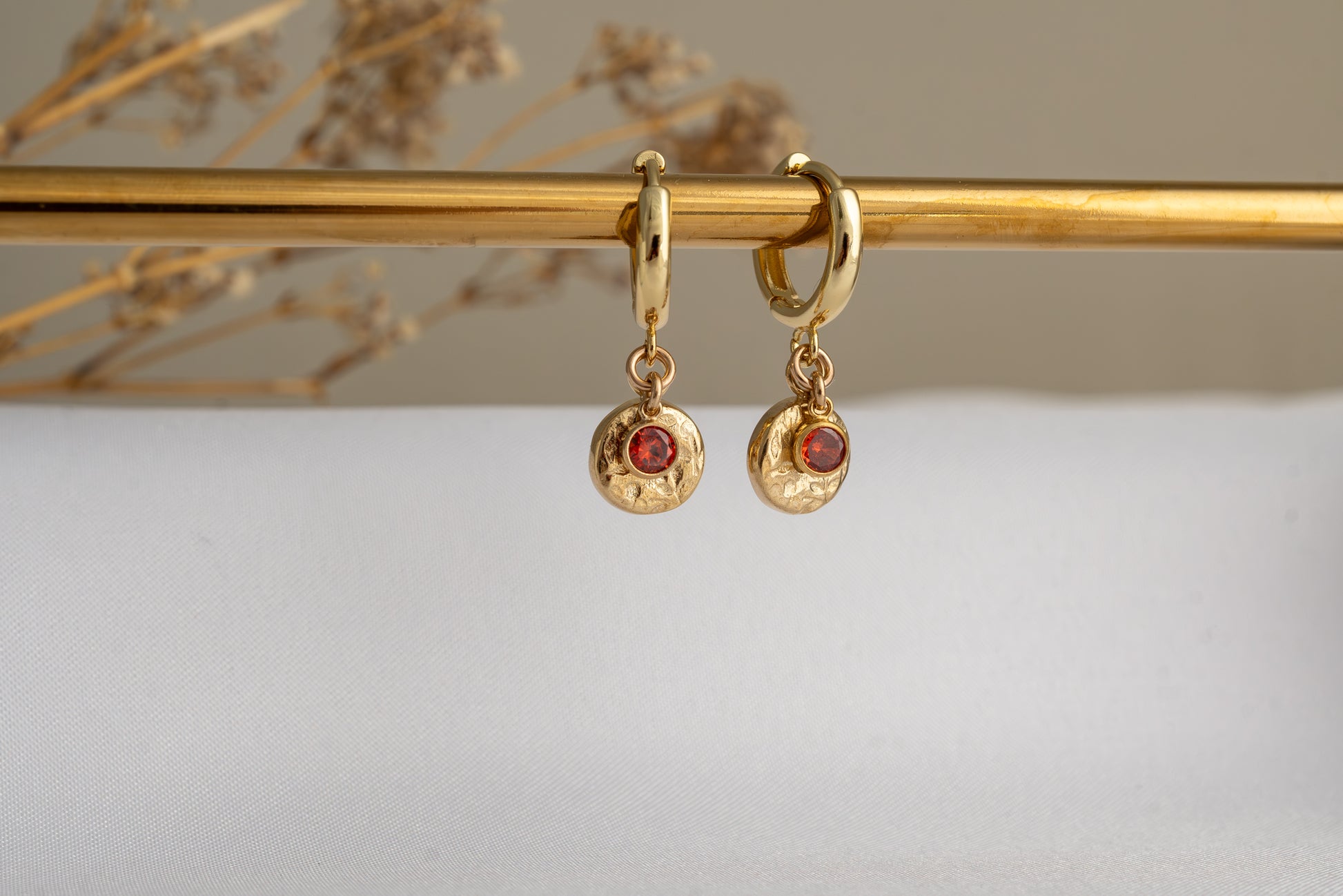 M045 Huggies médaillons fleuris dorés zircons cubiques rouges - $78.00