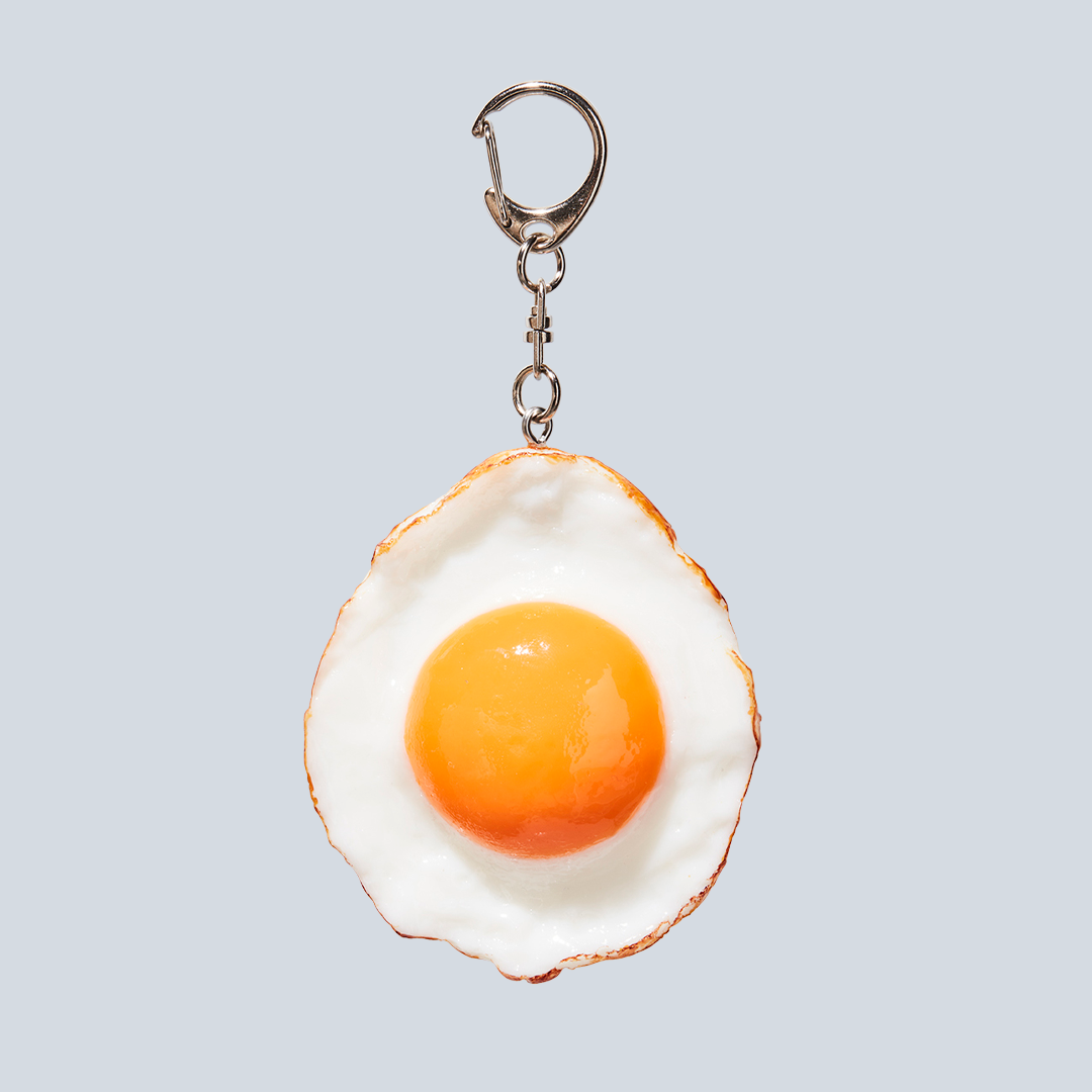 Your protein kick for your keychain. Felix Fried Egg is cast from genuine synthetic resin and painted by hand in Japan. A perfectly fried egg with a delicately shiny egg yolk on the way. The clip is also genuine stainless steel. Egg, egg, egg!