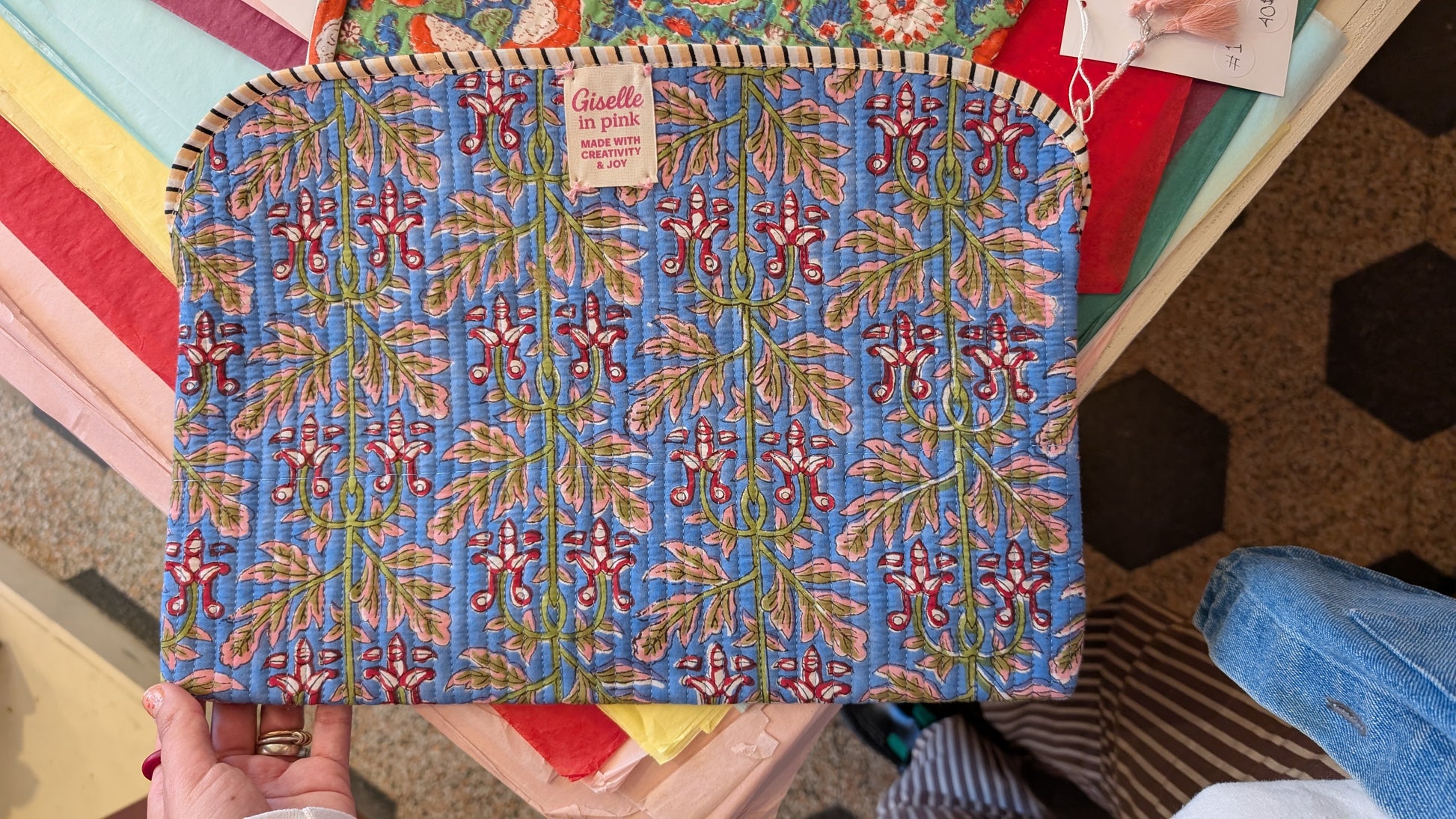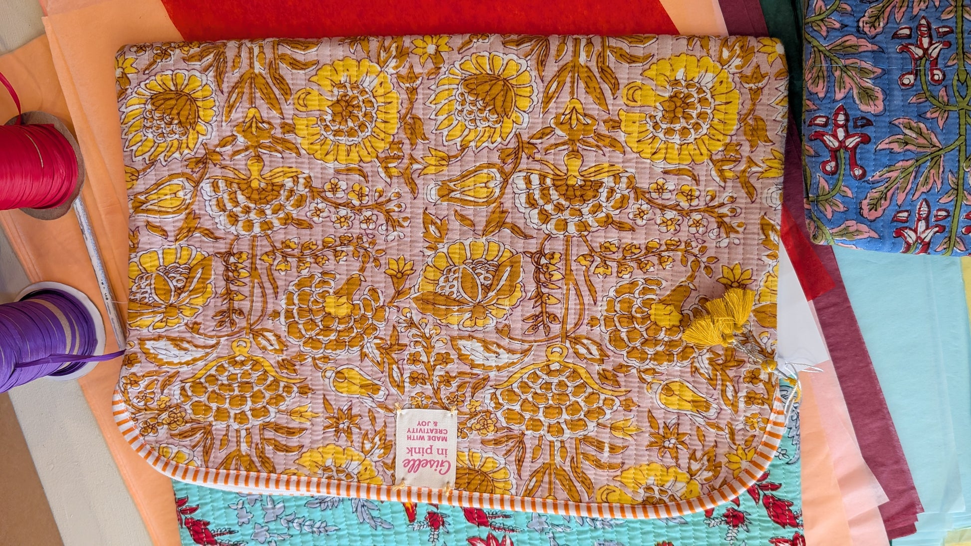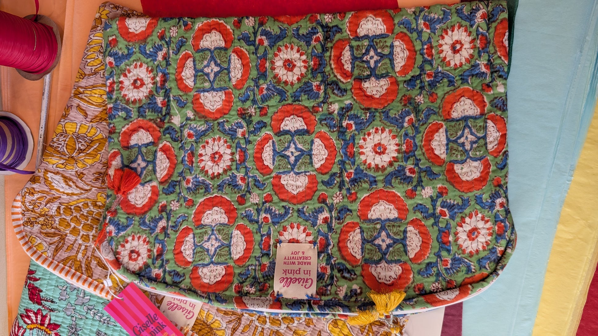 Housse d’ordinateur matelassée en coton imprimé artisanal indien.