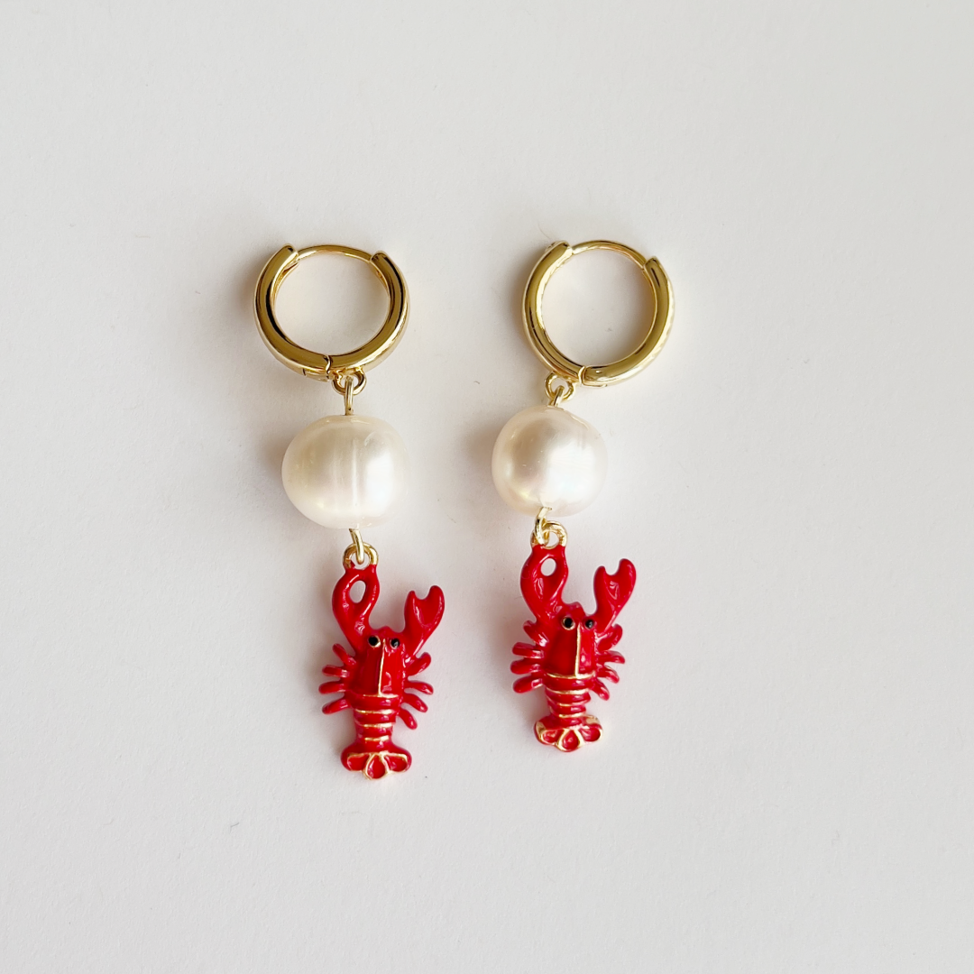Inject some lively, flirty vibes into your style with these Red Lobster Earrings! Featuring a cute lobster charm holding onto a gorgeous freshwater pearl and adorned with gold plated details, these earrings are the perfect way to add a pop of red to any outfit.