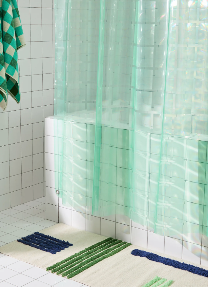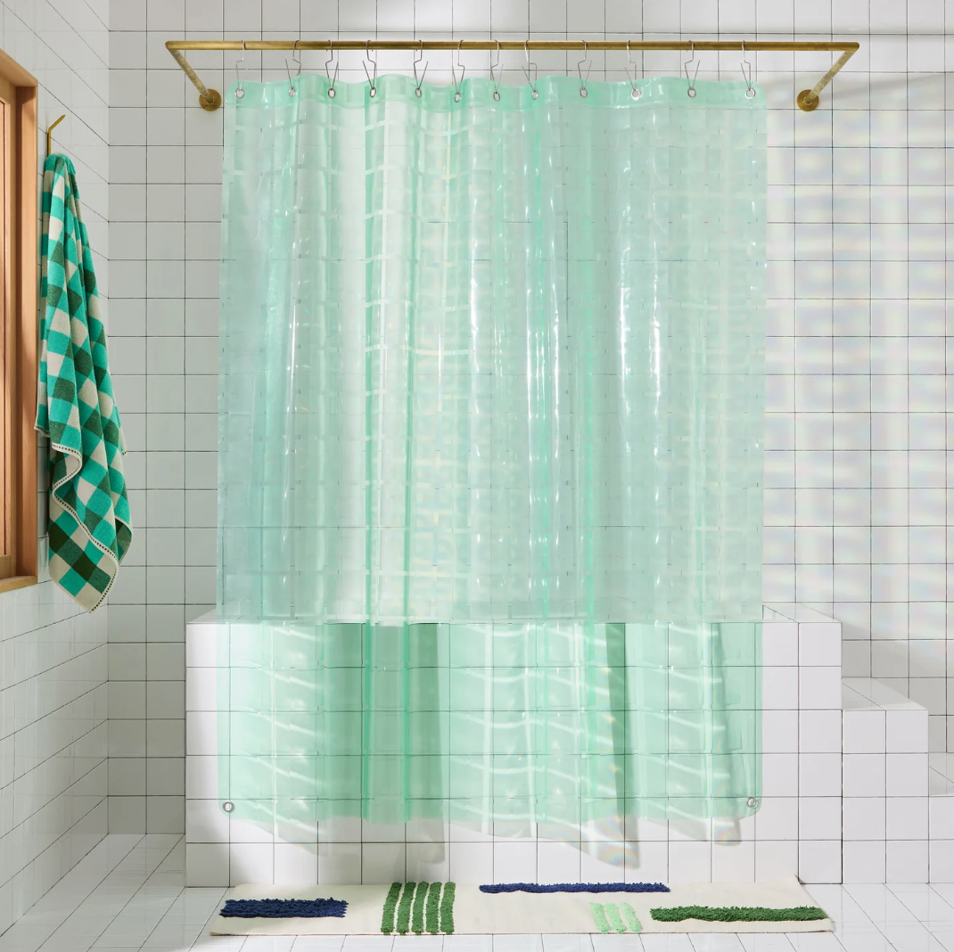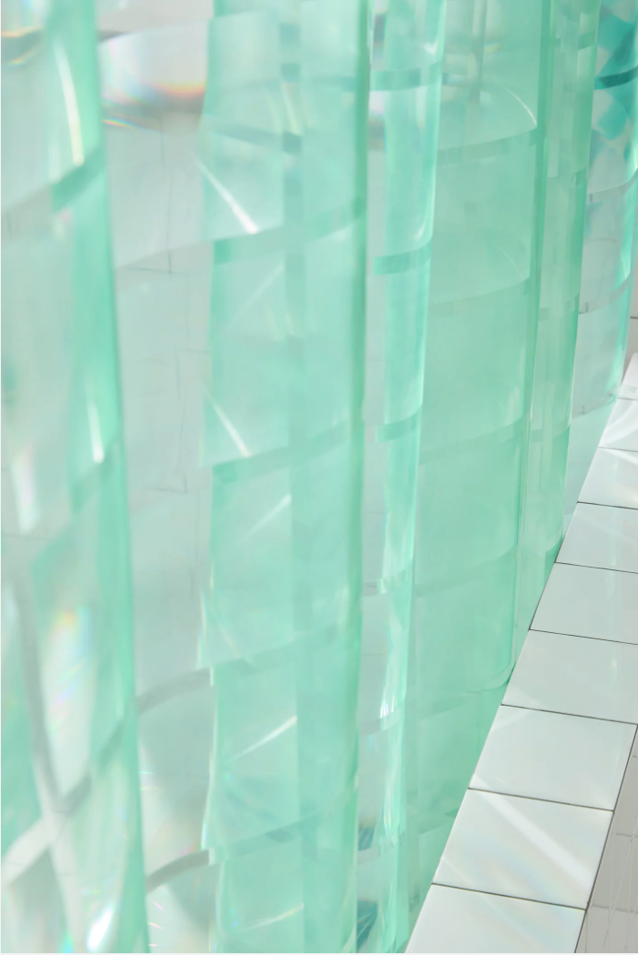 Découvrez Sun Shower Jazz ! Inspiré des briques de verre de la période Art déco, aussi appelée « l'ère du jazz », Sun Shower Jazz est un rideau de douche uni à effet 3D imitant les lignes des briques de verre de 10 cm x 10 cm. Lorsque la lumière éclaire le rideau avec précision, vous pourriez même voir un kaléidoscope de couleurs irisées se refléter dans votre salle de bains.