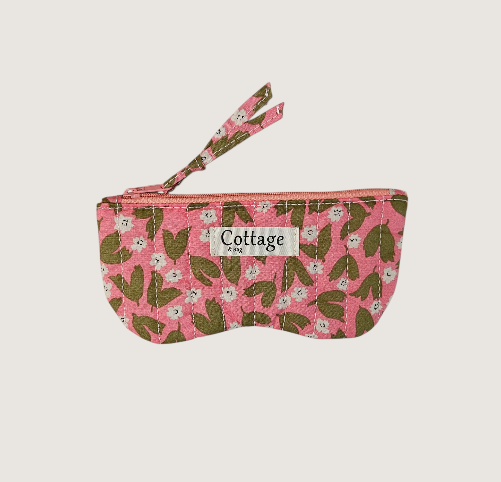 Etui à lunettes 100% coton (intérieur et extérieur) pour lunettes petites à moyennes, large choix de motifs floraux et léopard, matelassage artisanal, bonne épaisseur de rembourrage, fil épais, travail soigné.