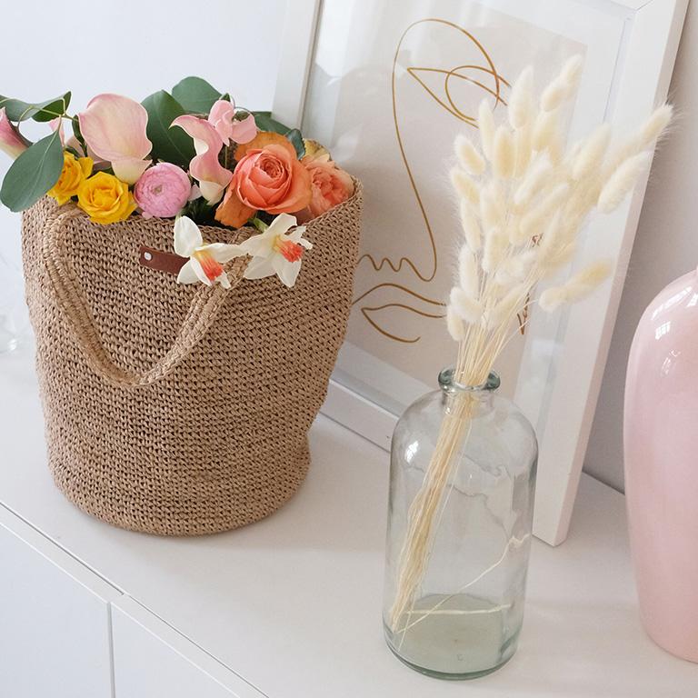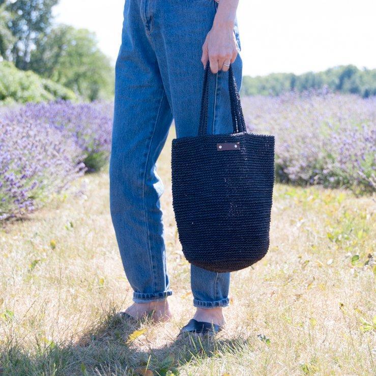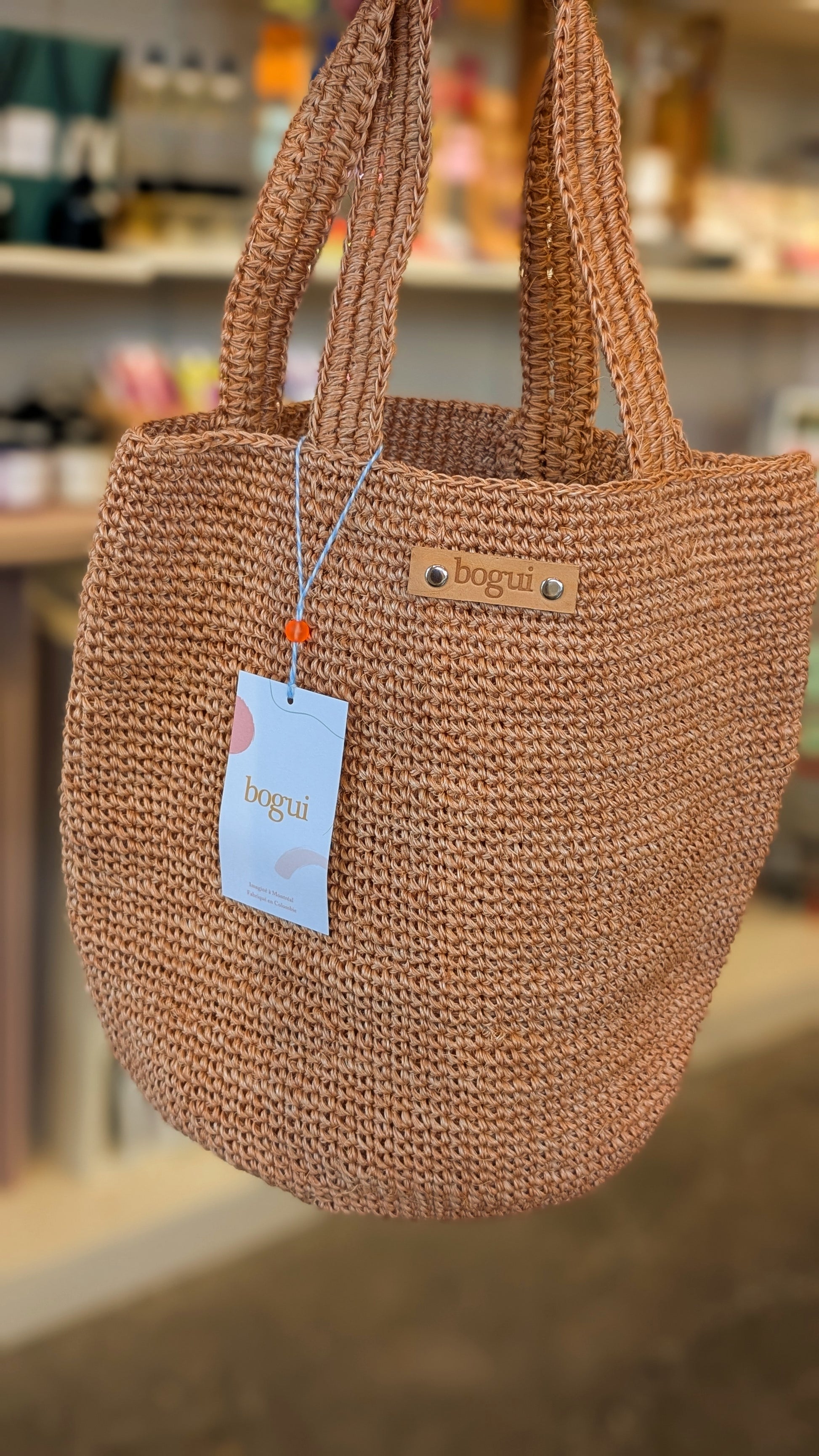 Fibre Fique . Anses tressées . Étiquette en cuir . Rivets décoratifs .