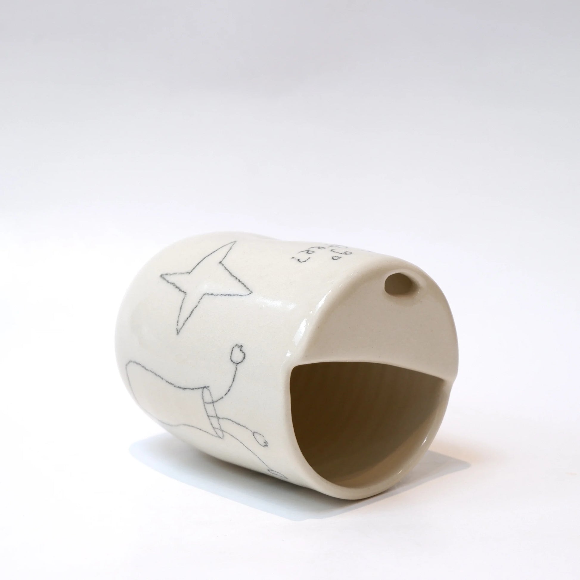 The travel cup is perfect for on the go or for bringing to a cafe! The lid makes it easy to sip and makes for less spilling. Features a thumb indent to make it fit perfectly in your hand!