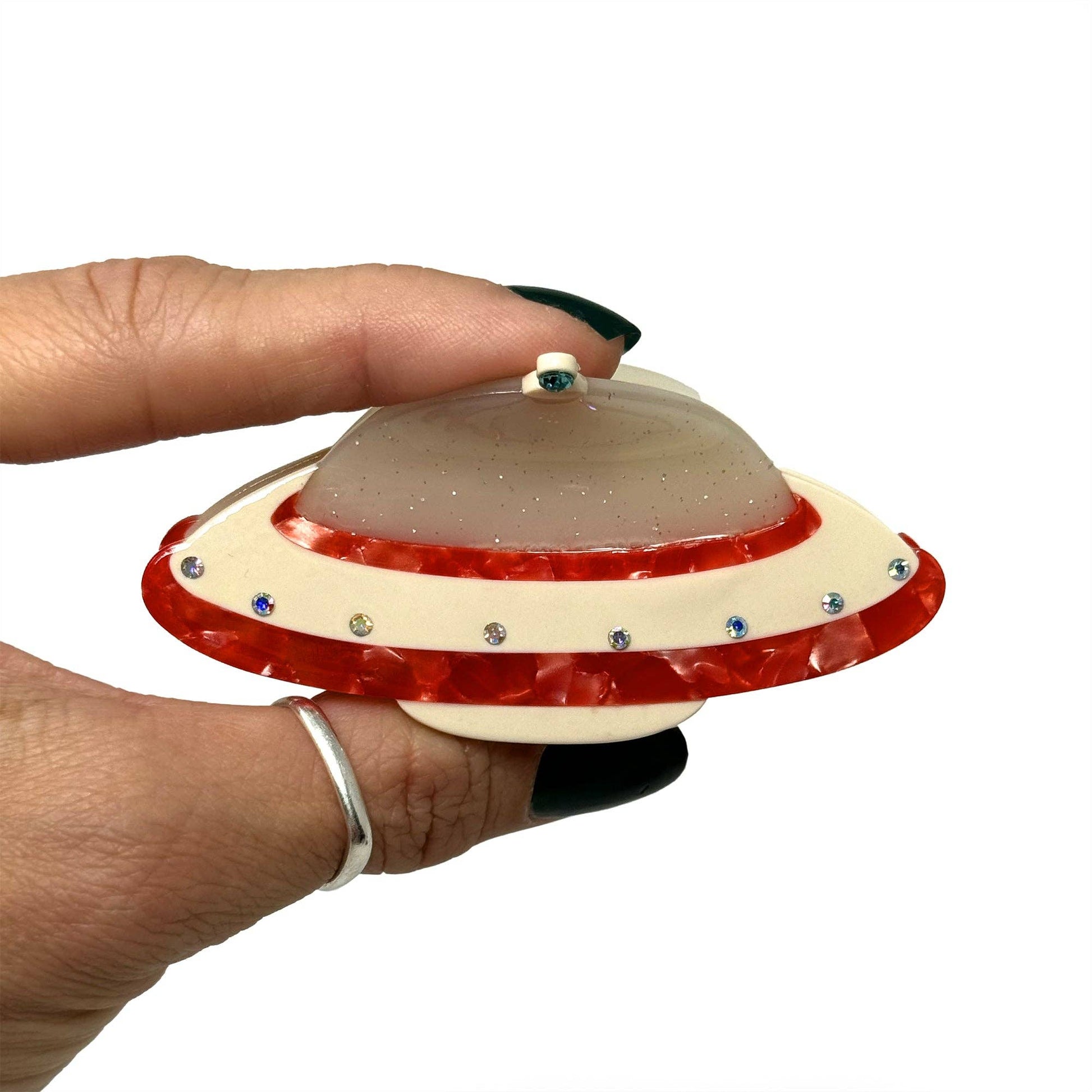 The truth is out there in the form of this flying saucer hair claw made of different styles including glitter, pearlized and rhinestone sections.