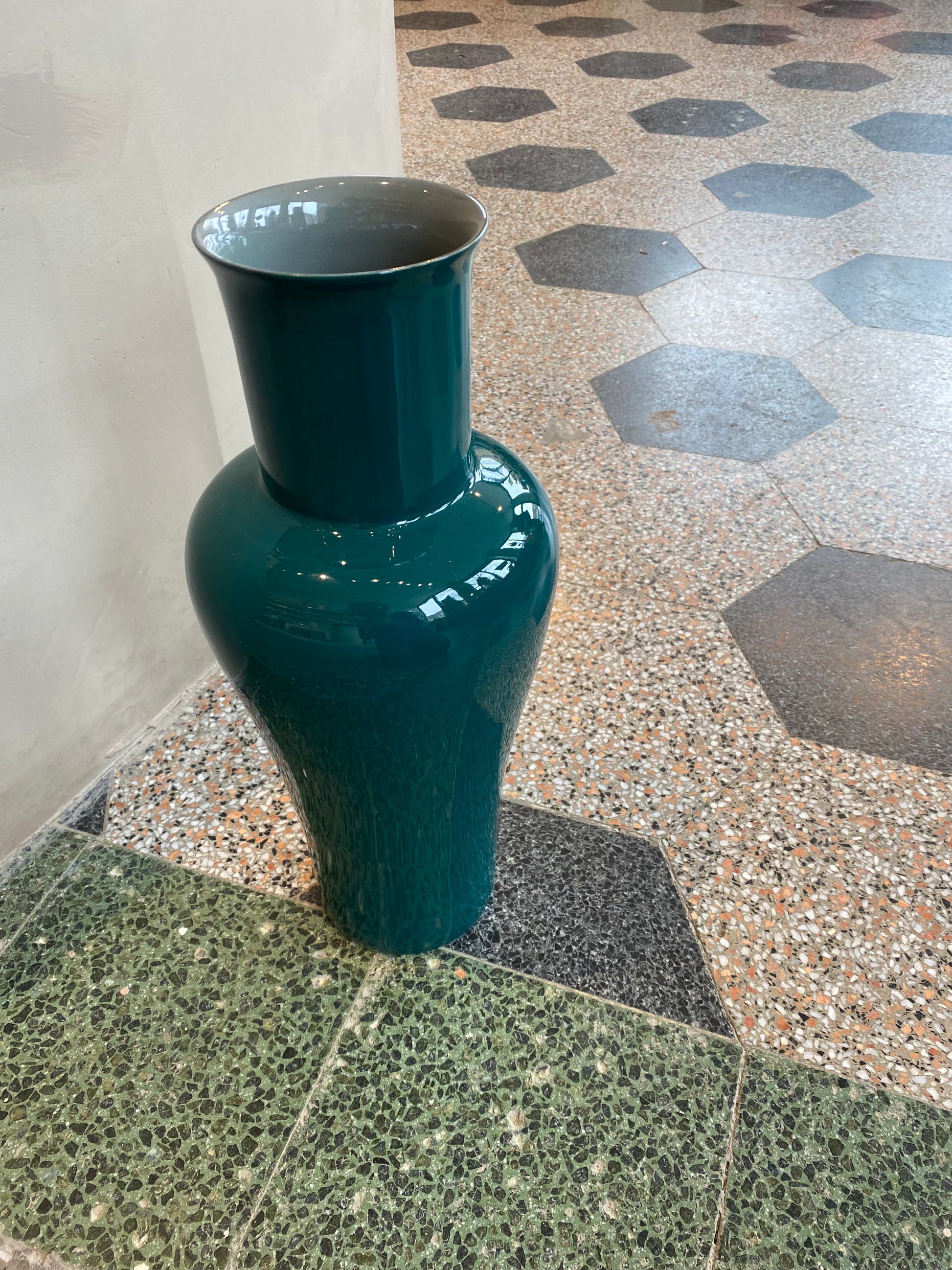 Virginia company Middle Kingdom's emeraude exterior and gray interior chandated vase