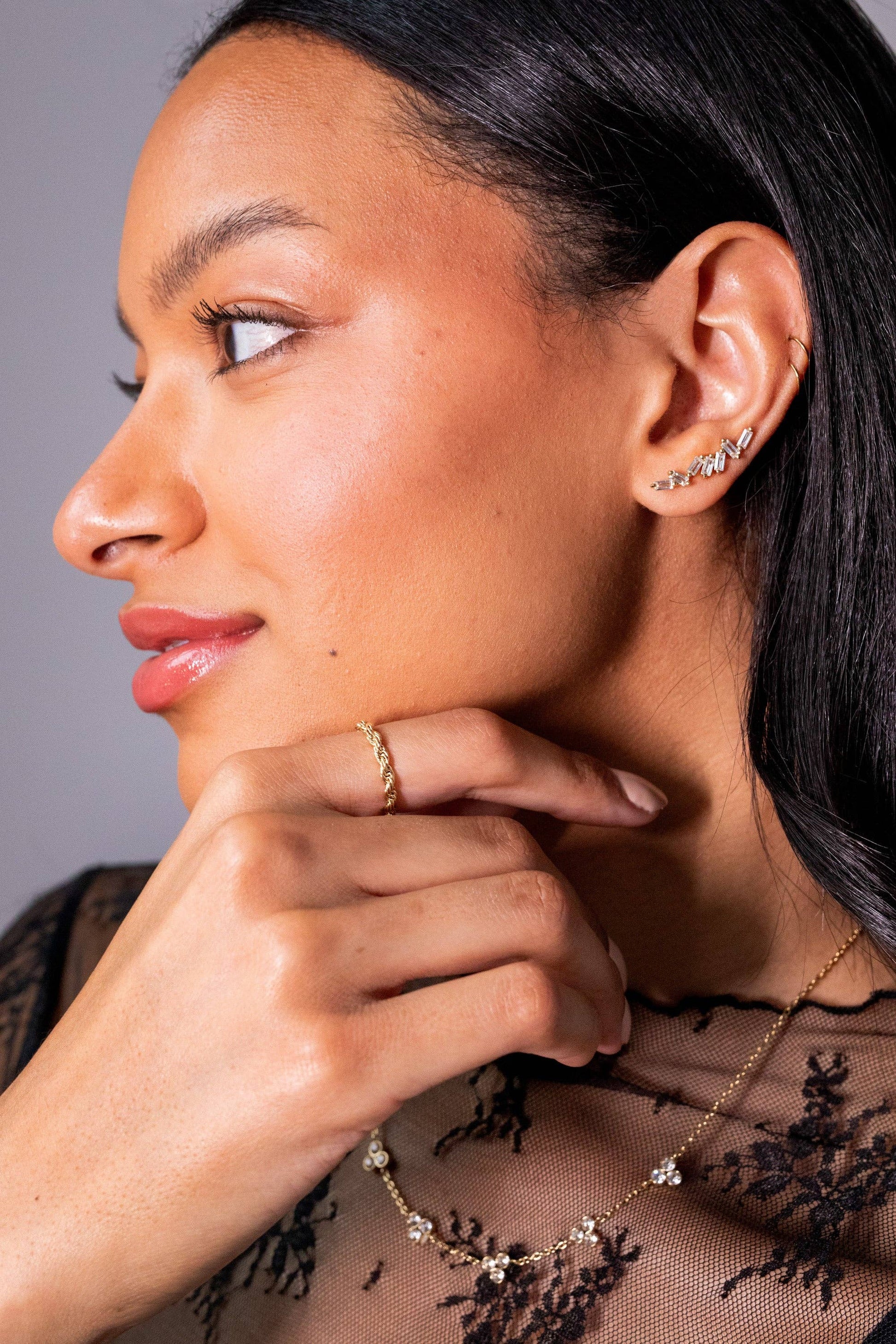 The best days are the days with a little bit of sparkle to them. Enhance your natural shine with these earrings, which feature gleaming baguette-cut crystals in a unique design that extends up the ear. Dress them up or down — they’re a beautiful addition to any look. Because they’re gold-tone stainless steel, they’re durable and scratch-resistant so you can wear them on repeat.