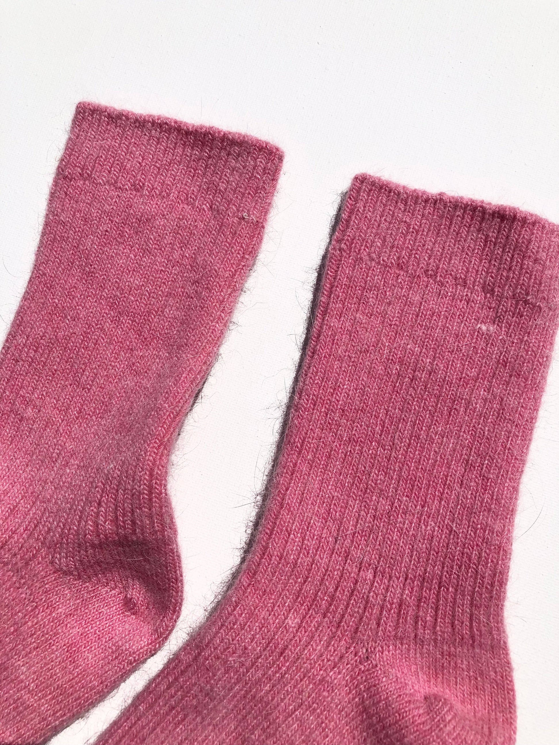 Those cozy wool socks are using the high percentage wool blended thread, make a steady piece with natural wool hand feel, great for the cold weather. FABRIC DETAIL: - 18%angora rabbit , 46%wool, 32%acrylic, 4%spandex SIZE: - One size fits the most (M) WASH AND CARE FOR WOOL • Wool doesn’t need washing every time you wear it. Its fibres have a natural protective coating, making it resistant to dirt and dust. Hang to ventilate instead. • To wash wool, use a specialist wool detergent at 30°C with a low spin setting. Squeeze out any excess water for heavier garments, without wringing. • Dry woollens flat on a rack, placing a towel underneath to absorb any drips. Hanging wool up to dry will stretch pieces out of shape. • Fold knitwear and store in drawers with mothballs. The weight of the wool will pull the piece out of shape if it’s hung up. • Pilling occurs naturally with friction and can be easily removed with a pilling comb or a fabric shaver. SIZE GUIDE: Size Women's Size Men's Size