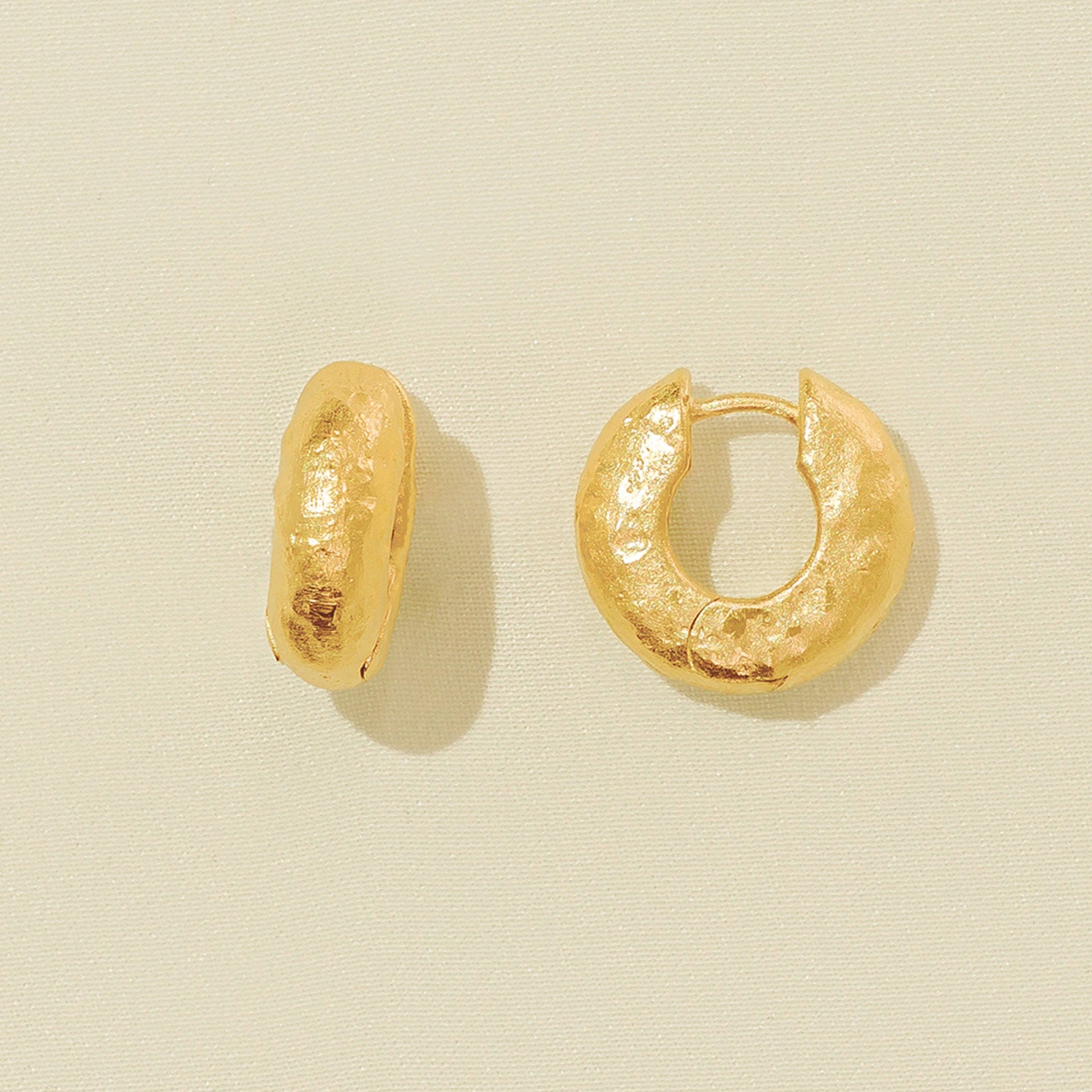 Un nouvel ajout à vos produits de base de tous les jours. Nos créoles Anilla sont audacieuses mais minimalistes, classiques mais toujours passionnantes. La finition martelée et texturée captera la lumière qui vous entoure et vous fera briller.