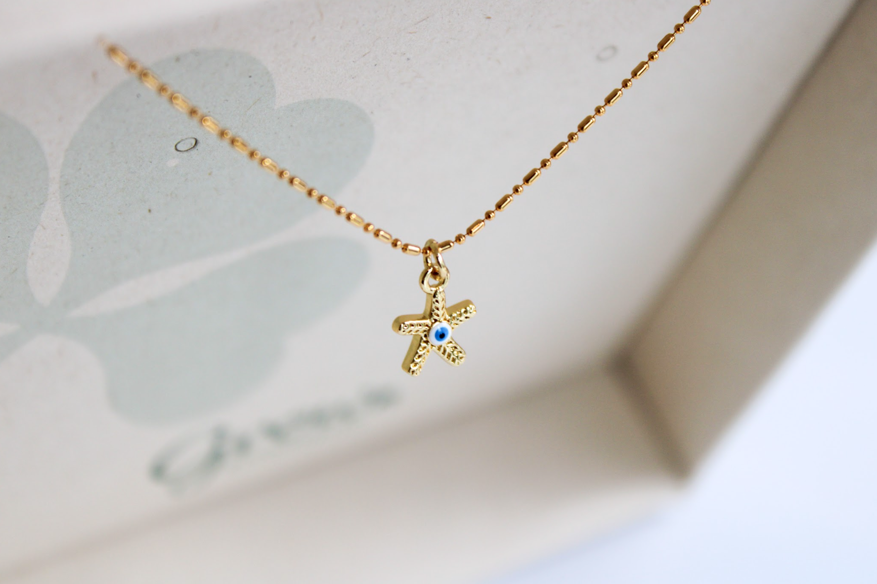 Collier plaqué or 24k, avec une breloque en etoile de mer, a porter tous les jours !