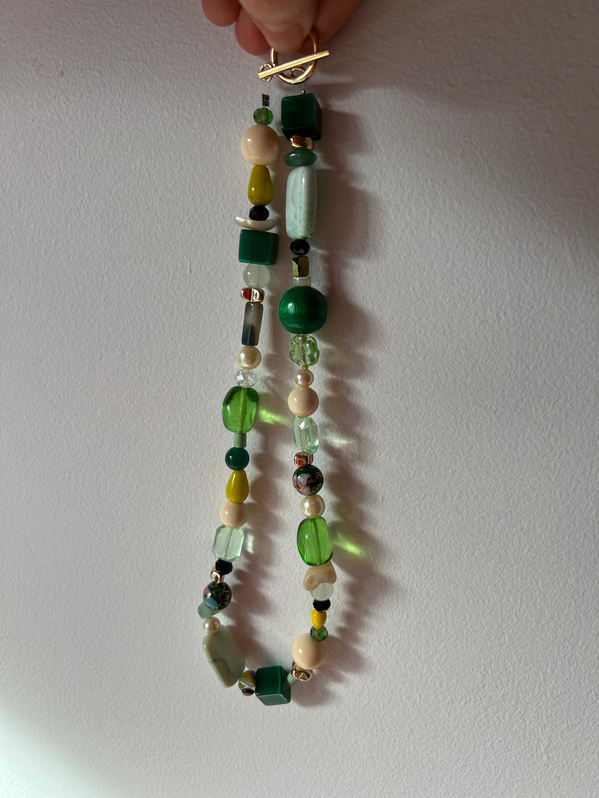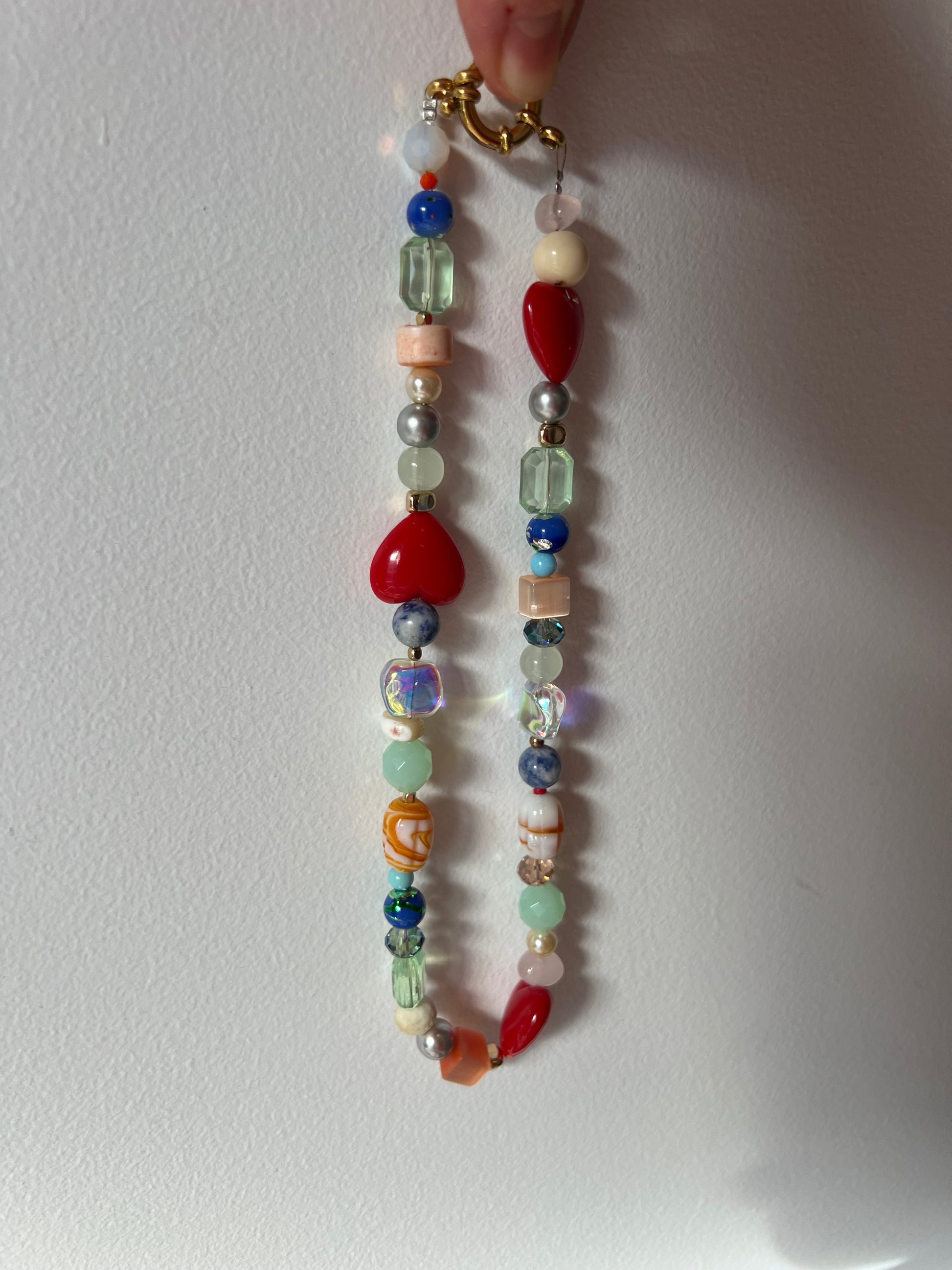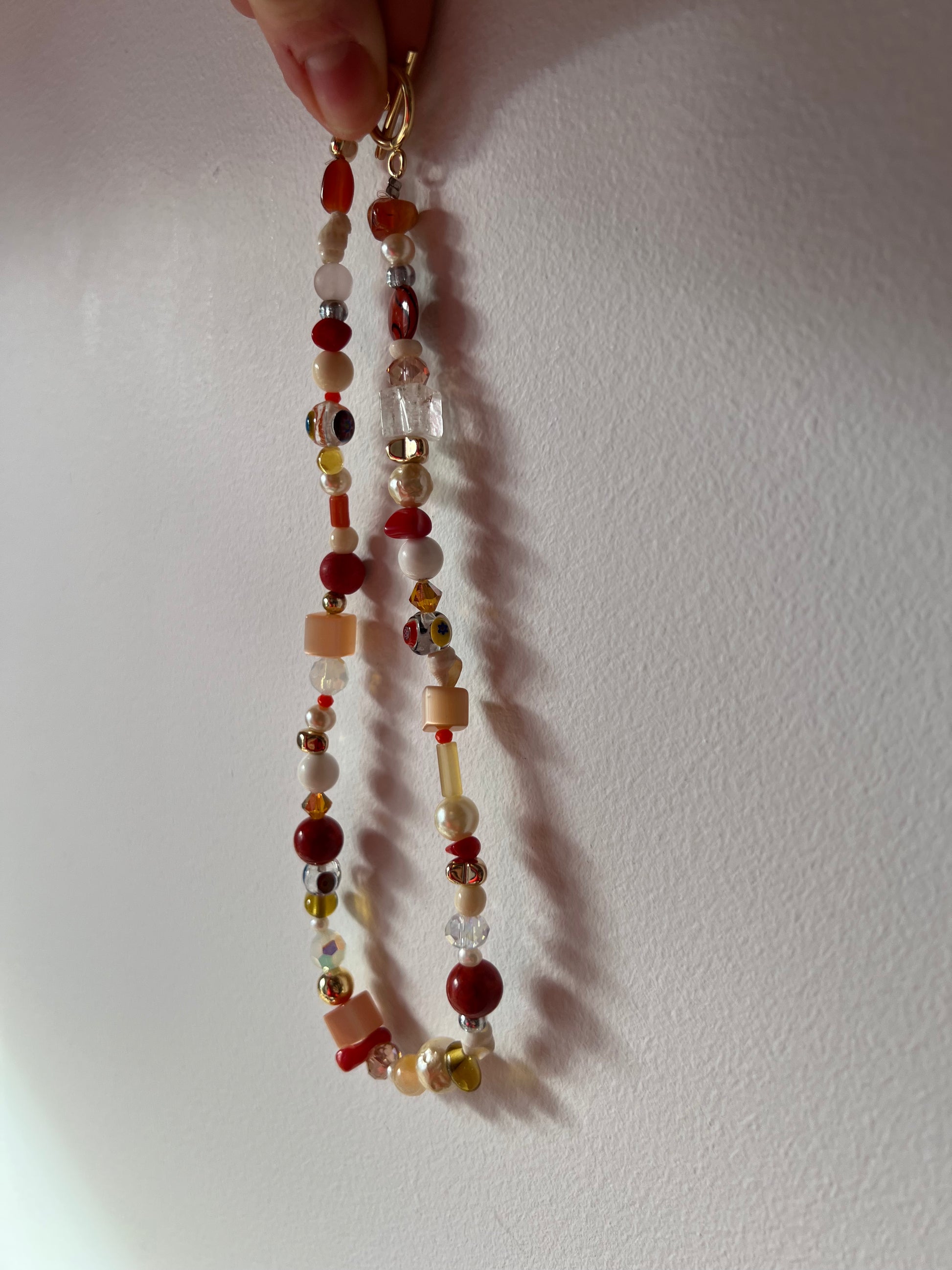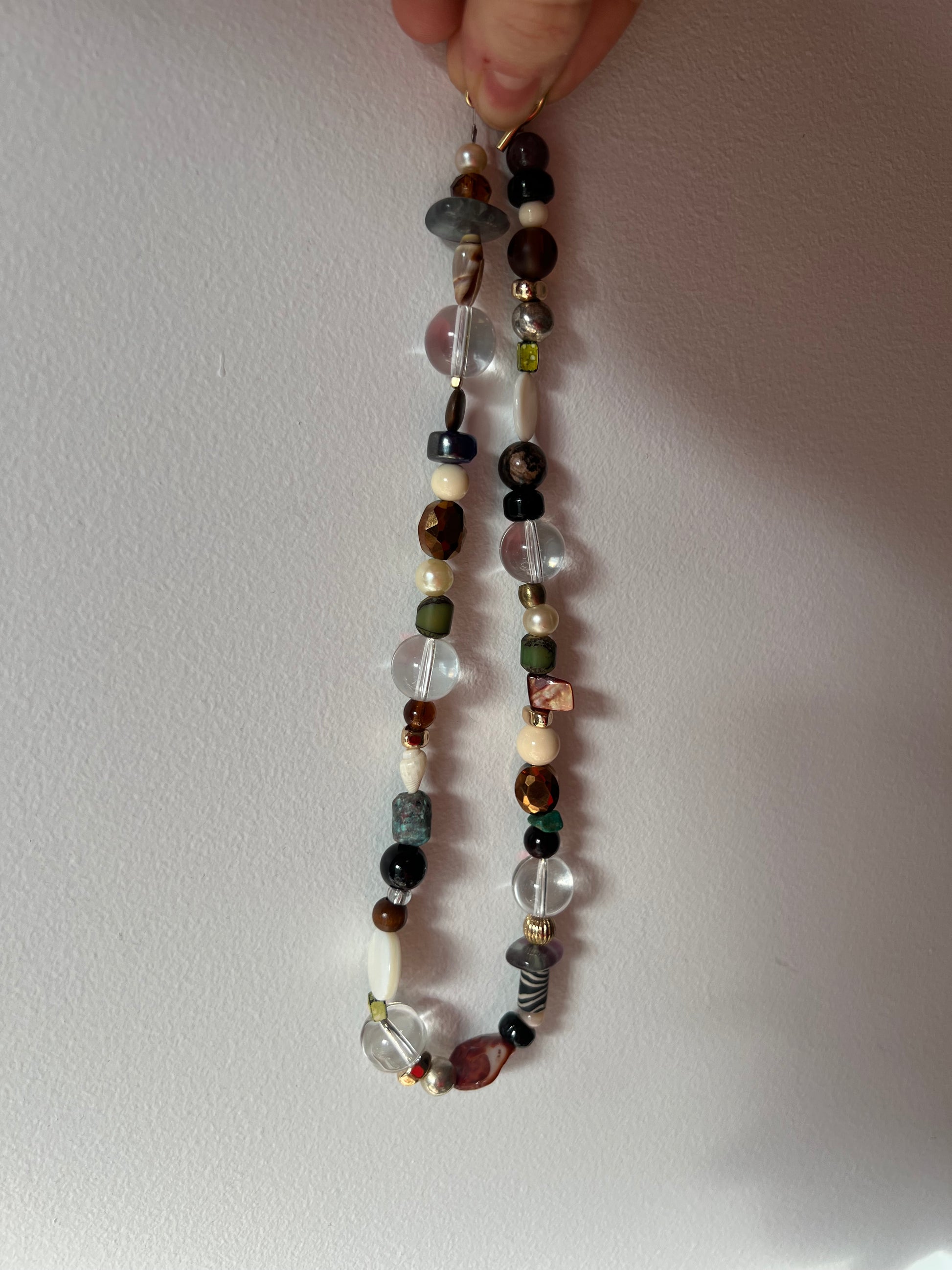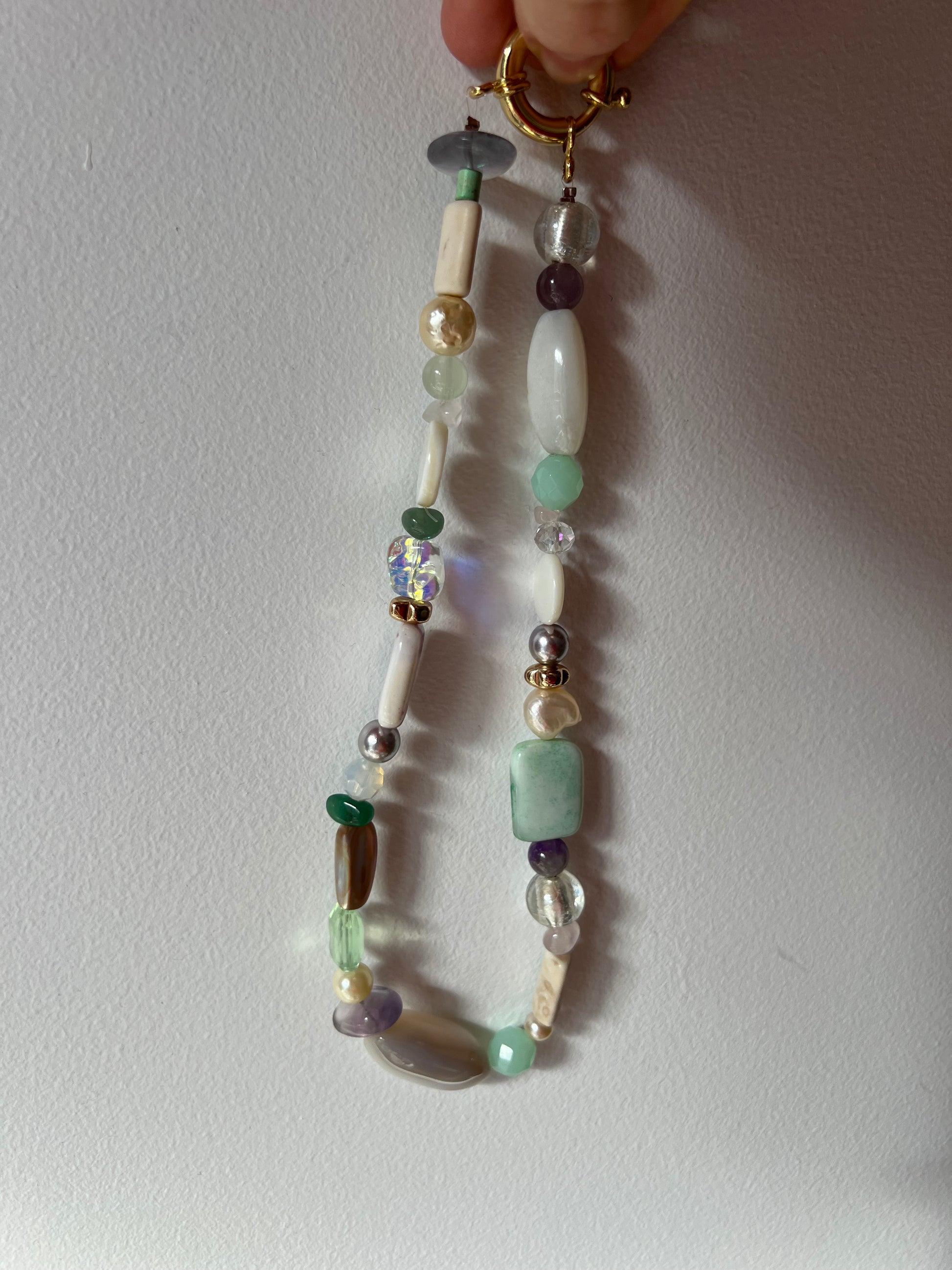 Je crois profondément que tout ce dont nous avons besoin existe déjà. C’est dans cet esprit que je recycle des perles à 99% véritables – pierres naturelles, coquillages, perles semi-précieuses… – pour les transformer en bijoux uniques. Chaque création naît d’un jeu d’associations, où les perles se mélangent et se complètent pour révéler leur beauté.