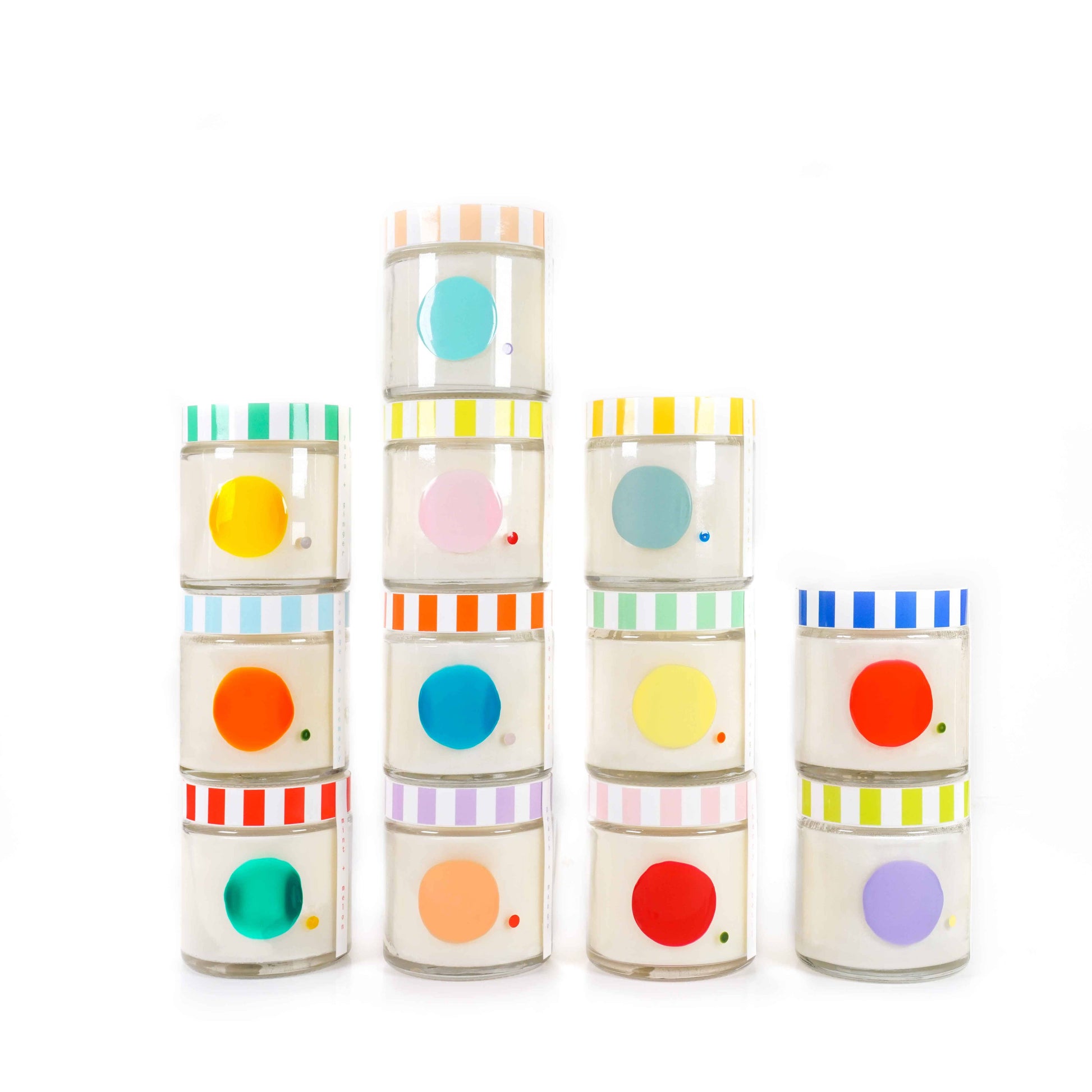 100ml natural soy wax vegan candle fragrance & essential oils burn time ~ 20h each candle hand painted glass container, every piece has a slightly different drawing handmade in Barcelona.