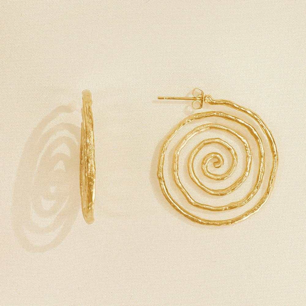 Wear Nacci for depth and dimension. A single, curvy and fluid spiral on each ear, symbol of the eternal cycle of life and the endless possibilities of your journey. Length : 39 mm Gold gilded (gilding : satin) Ethically made in France