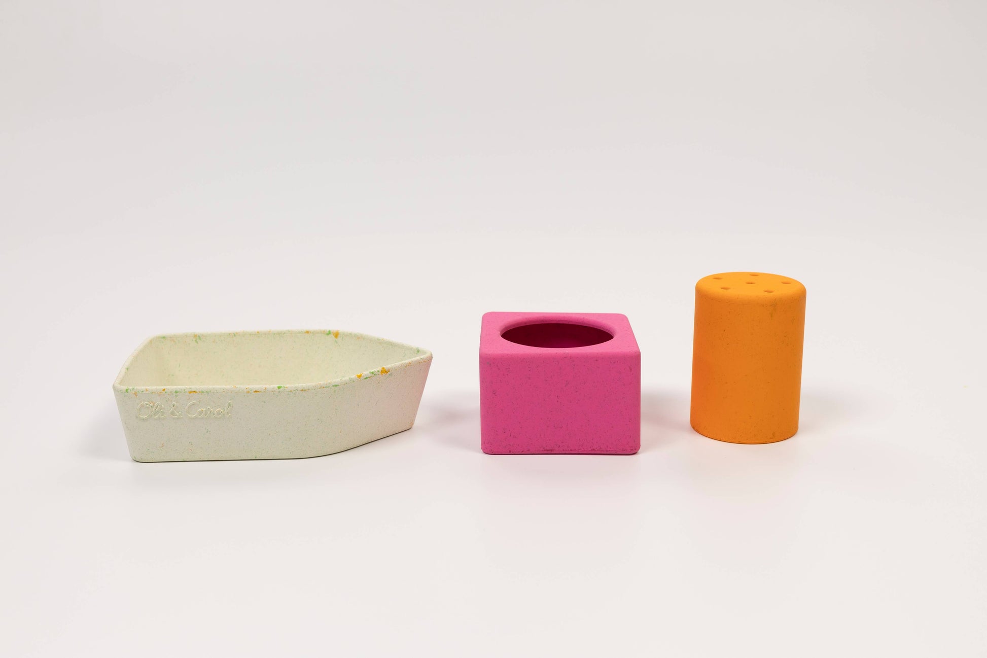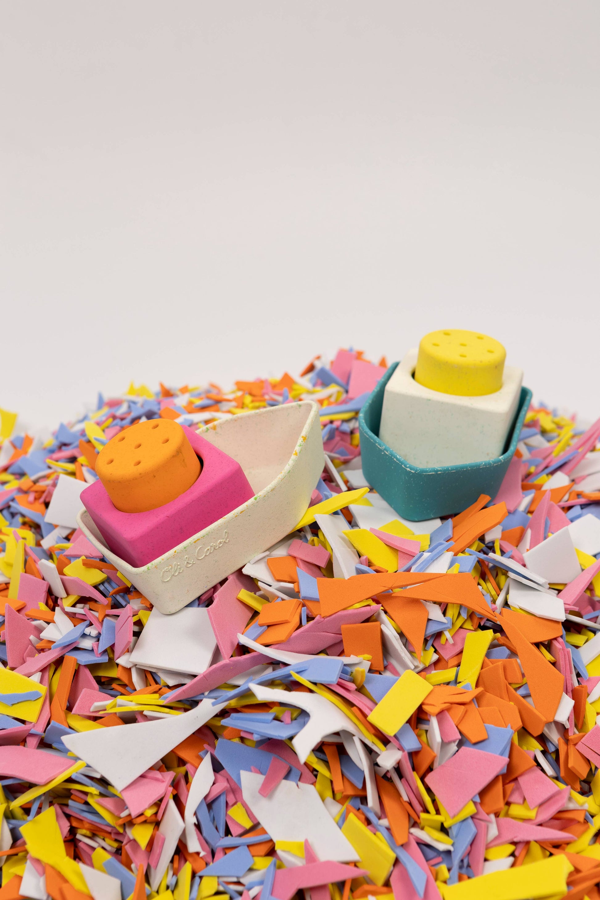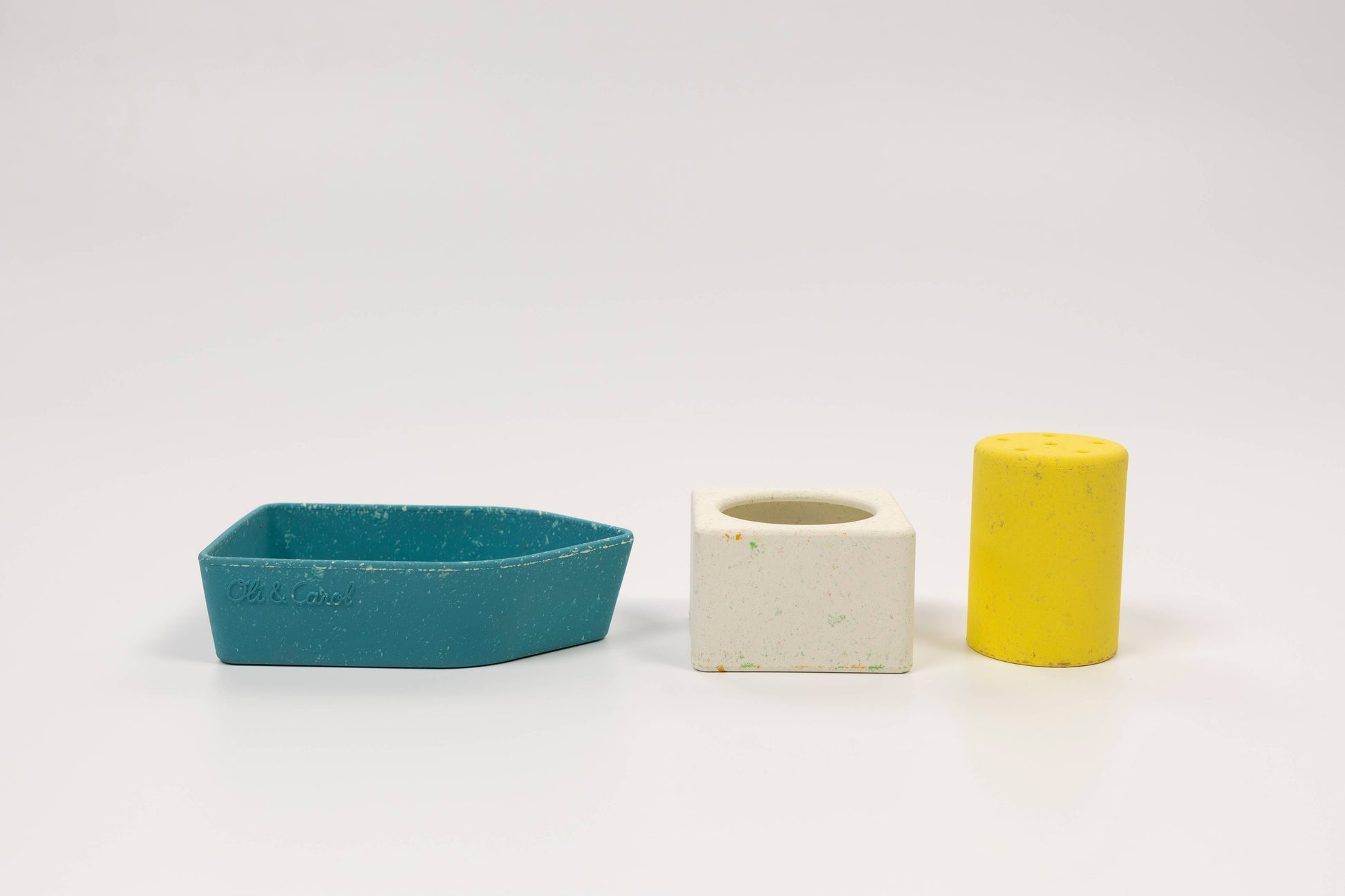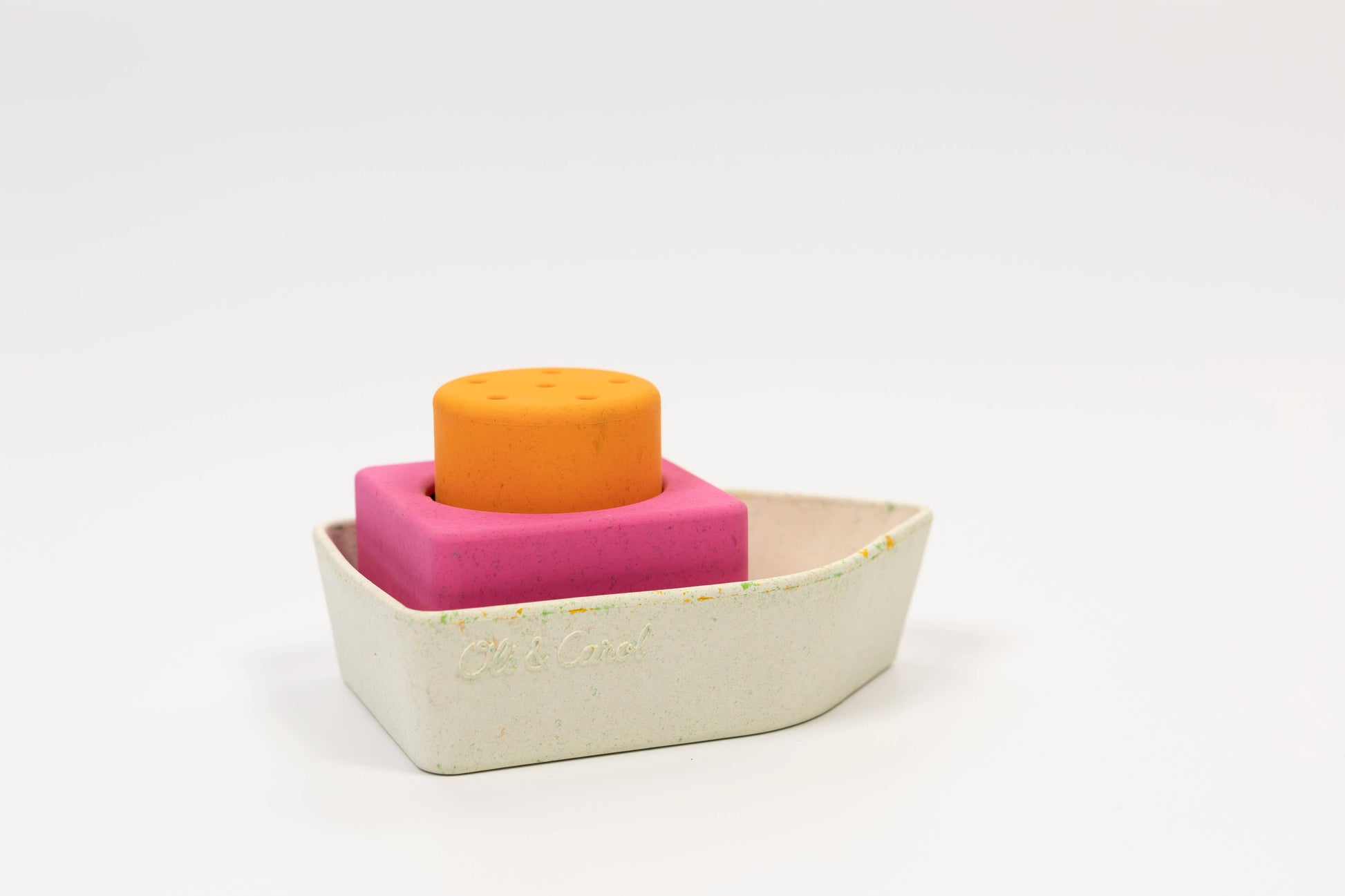 The Oli&Carol Upcycled Boat is a natural rubber educational toy meant for bath time interactive play! Made from our own waste giving a second life to leftovers. It promotes imaginative play and develops fine and gross motor skills by encouraging physical activities that require filling, stacking draining water from each piece. Upcycled Boat helps kids' hand-eye coordination while improving problem-solving abilities cognitive development due to water play interaction. Reusing leftovers and made from upcycled materials, these bath toys show our commitment to keeping the planet green. Each bath toy boat is carefully crafted to be durable and safe for endless play. When you choose Upcycled Boats, you’re helping reduce waste and making our world a cleaner place. Plus, these boat toys for bath teach kids to love and care for the environment from a young age.